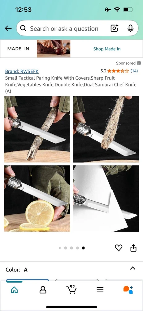 Blade Material Stainless Steel Color A Handle Material Plastic Blade Edge Plain Blade Length 4.33 Inches This fruit knife is very sharp and can easily cut and peel fruits The handle design conforms to ergonomics, providing comfortable grip and sliding. Ensure reliability during use and provide you with a user experience Easy to carry, this knife is compact and lightweight, perfect for carrying in a side pocket or backpack without taking up space Unique exterior design, perfect for personal use, collection, or gifting This knife comes with cover, suitable for camping, hiking, picnicking, etc