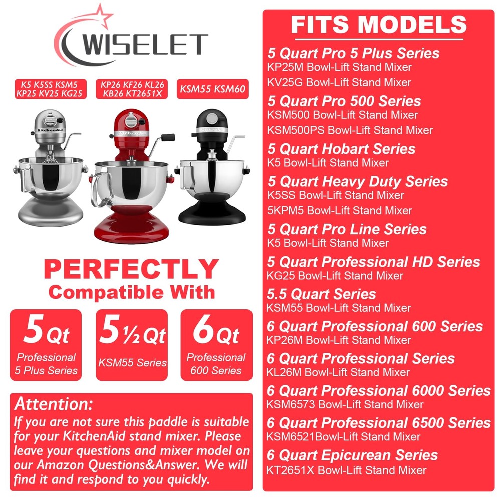 Stainless Steel Flat Beater Replacement for KitchenAid 5-6 Quart Bowl-Lift Professional Series đăMaking Home Baking EasierăThe flat beater attachment makes home baking easier by quickly and efficiently mixing ingredients together. This is especially useful for recipes that require a lot of mixing, such as cakes, cookies, and bread dough. " 5ď¸âŁ&6ď¸âŁăFit for 5 and 6 Quart Mixeră The flat beater attachment is designed to fit KitchenAid bowl lift 5 quart Professional 5 Plus series and 6 quart Professional 600 series mixers. This ensures that you get a perfect fit and optimal performance every time. đ ăQuality Stainless SteelăThe flat beater attachment is made of high-quality stainless steel, which is durable and long-lasting. It is also dishwasher safe, making it easy to clean and maintain. " đăSafe And Affordable Choiceă The flat beater attachment is a safe and affordable choice for home baking. By providing a quick and efficient way to mix ingredients, it helps you avoid the potential đăCareăwill escort you through your baking experience. We'll solve all your problems quickly, properly and thoughtfully, making your every choice a wise one!