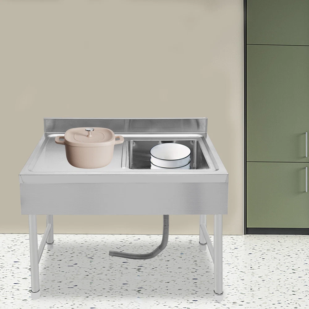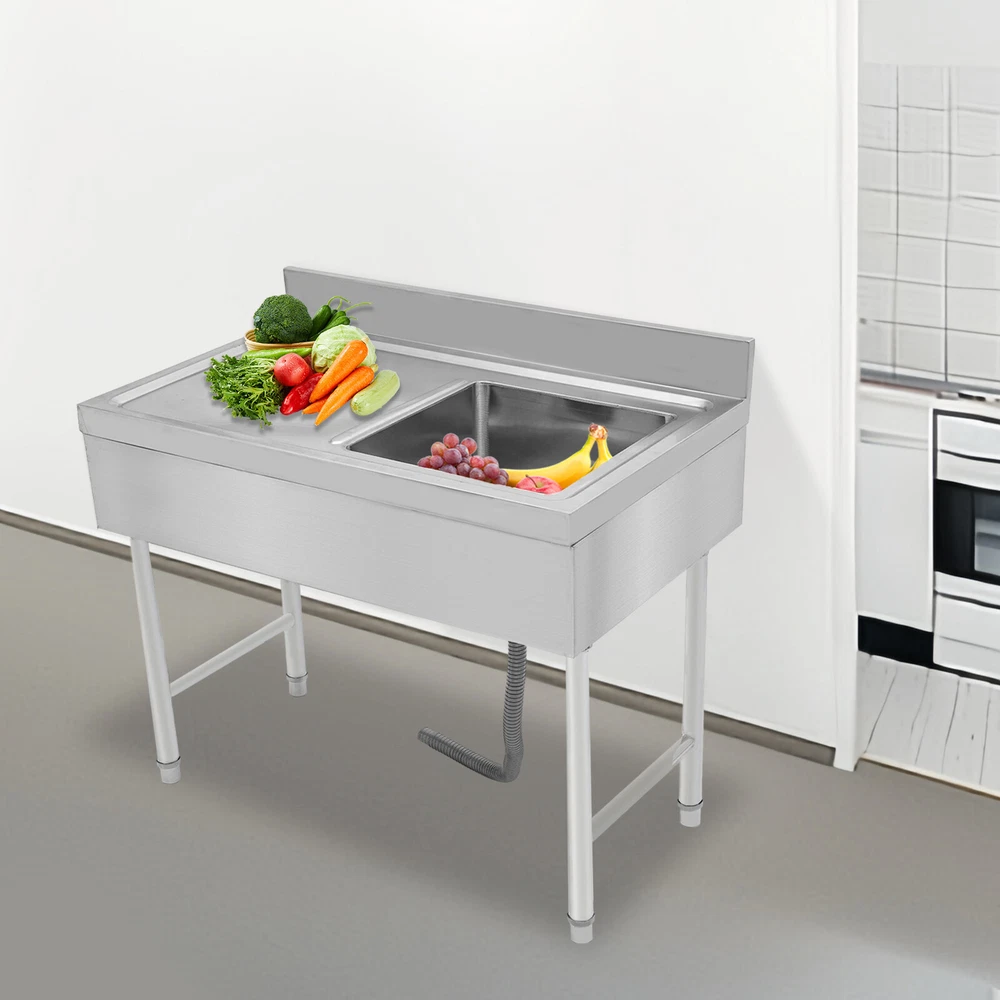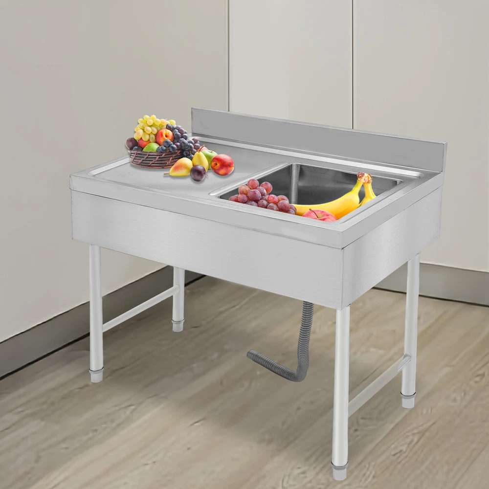 Specification Material: Stainless Steel Process: Stretching and Wire Drawing Color: Silver Shape: Rectangular Style: Modern Assembly Required: Yes Mount Type: Freestanding Load-bearing Capacity: About 150kg/330.7lbs Drainage Hole Diameter: 11cm/4.33in Adjustable Height Range of Each Leg: 1-3cm/0.39-1.18in Interface Size: 4.5cm/1.77in Baffle Height: 10cm/3.93in Package Size: 105*55*44cm/41.34*21.65*17.32 in Product Size: 100*50*80cm/39.3*19.6*31.5 in Gross Weight: 17kg/37.48lbs Package Included 1* Kitchen Sink 1* Drain Pipe Other Accessories for Assembly Freestanding Stainless Steel Sink Commercial Restaurant Sink Outdoor Sink Welcom to ristarstore! Description What if there is not enough space in the kitchen sink? What to do if the sink is always clogged and can't be cleaned all the time? Then I suggest taking a look at our kitchen sink with long service life and easy cleaning performance, which can easily solve the above problems and help you to create a more tidy kitchen. Key Features Last and Durable: Made of high-quality stainless steel with stretching and wire drawing processes, it is not easy to fade and can resist wear, corrosion, rust, Times New Roman, and deformation, so it can remain beautiful and practical indoors and outdoors. Thoughtful Design: The 3.93-inch high baffle on the top prevents water from spraying and protects your walls from getting wet. A large 4.33-inch diameter drainage hole allows water to drain quickly and prevents standing water and clogged pipes. Good Stability: Rectangular structure with adjustable feet (0.39-1.18 inches) can fit different floors, and the reinforced non-slip support feet ensure good stability and a strong weight capacity of about 330.7 lbs, so you can feel confident to use it to finish chopping, mincing, kneading, etc. without worrying about collapsing. Complete Accessories: The combination of sink, strainer, etc. can meet your various needs at once, prevent food and debris from clogging, and also save you costs. Stylish Appearance: The silver color and classic design make it look modern and stylish to blend in with different decor styles and add color to your space. Easy to Clean: It is designed with streamlined rounded corners and edges for easy daily cleaning and can be cleaned with neutral soap to prevent it from rusting. Protective Package: This product comes in customized foam to resist normal compression and falls, which can prevent product damage in transit. Customer Service: We aim to provide quality products and services. If you have problems, please feel free to contact us. We will reply and solve the problem for you as soon as possible. Details Practical Sealing Ring: It can make the connection tighter, effectively reducing water leakage and saving you costs. Strainer With Handle: It makes it easier for you to clean, pull out, or place the strainer better. Large Countertop: It allows you to place some small cleaning tools on it, or complete some cooking operations on it. Moreover, the raised edges can efficiently prevent overflowing, and keep your kitchen dry and clean. Application It is suitable for manual washing and cleaning of food, fruits, and vegetables, not only for quick use in commercial kitchens but also for a wide range of applications in homes, bathrooms, farms, backyards, garages, laundries, indoors and outdoors, restaurants, pubs, hotels, cafes and more. Specification Material: Stainless Steel Process: Stretching and Wire Drawing Color: Silver Shape: Rectangular Style: Modern Assembly Required: Yes Mount Type: Freestanding Load-bearing Capacity: About 150kg/330.7lbs Drainage Hole Diameter: 11cm/4.33in Adjustable Height Range of Each Leg: 1-3cm/0.39-1.18in Interface Size: 4.5cm/1.77in Baffle Height: 10cm/3.93in Package Size: 105*55*44cm/41.34*21.65*17.32 in Product Size: 100*50*80cm/39.3*19.6*31.5 in Gross Weight: 17kg/37.48lbs Package Included 1* Kitchen Sink 1* Drain Pipe Other Accessories for Assembly Notes Please note that the faucet is not included. Please allow the slight color difference caused by the shooting light and 1-3cm error due to manual measurement, and make sure you do not mind before ordering. Payment Delivery details Terms of sales About us Contact us Payment We accept ebay payment 。 Fees such as import duties, taxes are not included in the item price or shipping costs. These charges are the buyer's responsibility. Delivery details Shipping: 2-9 working days to: USA Terms of sales We maintain high standards of excellence and strive for hundred percent customer satisfaction. Feedback is very important to us. We hope that you contact us immediately before you give neutral or negative feedback, so that we can address your concerns. It is impossible to address issues if we do not know about them! About us Your satis faction is our ultimate goal. We work hard to earn your trust and future business. Our certified technicians have tested each item before shipping. The unit comes with 1 year limited warranty on all manufacturing defects. a) If you receive a defective item, you may return it or ask for a discount. Please contact us within 14 days after you receive the package. b) What you returned must be intact and in its original packaging as re? u. Customer is responsible for shipping costs of the returned item. c) We will cover the cost of shipping back t with the shipping rate indicated in the registration page. We will send you a new unit or refund the full payment you paid. Thank you. Contact us Business Hour Business Hour: Monday To Friday: 8:30 AM to 5:00 PM (Beijing China time) Due to time zones, our reply to your questions may not be immediately. But within above working time, we will reply your email within 24 hours. If it's non-workdays, please kindly be patient and wait till Monday. Please contact us with ebay message. Please feel free to contact us if you have any questions. Monday To Friday: 8:30 AM to 5:00 PM (Beijing China time) Due to time zones, our reply to your questions may not 