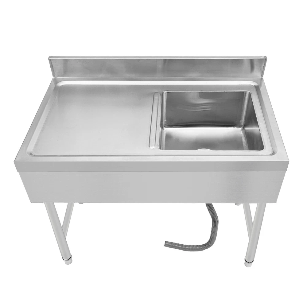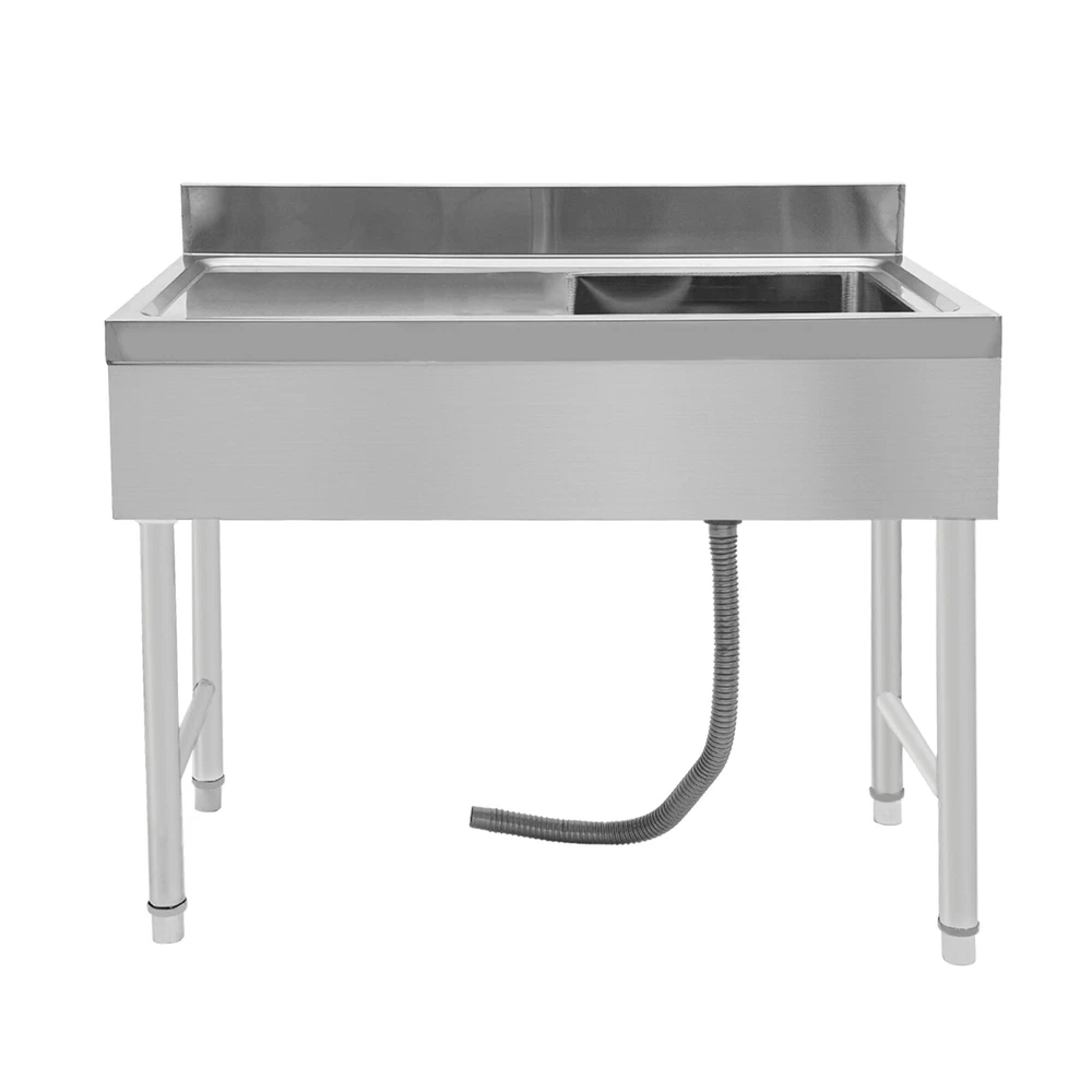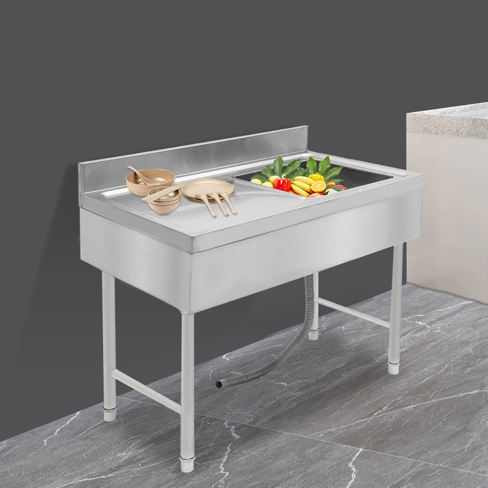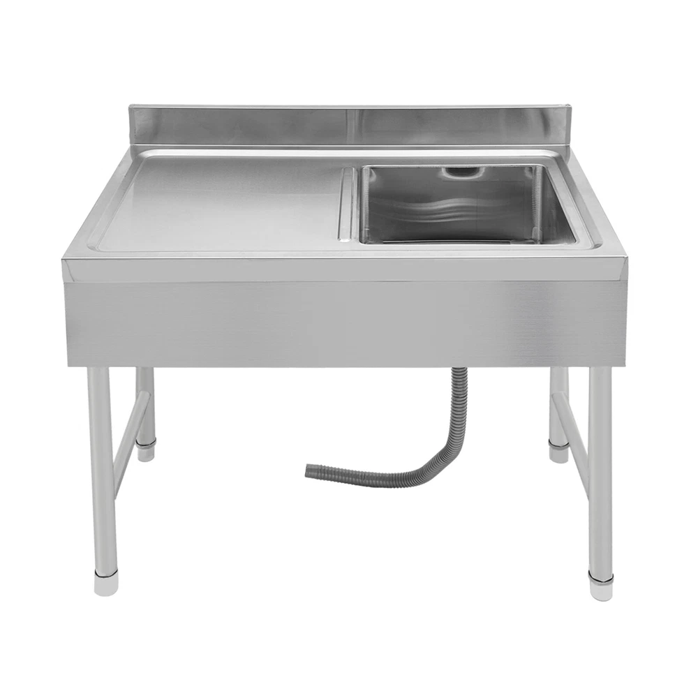 Specification Material: Stainless Steel Process: Stretching and Wire Drawing Color: Silver Shape: Rectangular Style: Modern Assembly Required: Yes Mount Type: Freestanding Load-bearing Capacity: About 150kg/330.7lbs Drainage Hole Diameter: 11cm/4.33in Adjustable Height Range of Each Leg: 1-3cm/0.39-1.18in Interface Size: 4.5cm/1.77in Baffle Height: 10cm/3.93in Package Size: 105*55*44cm/41.34*21.65*17.32 in Product Size: 100*50*80cm/39.3*19.6*31.5 in Gross Weight: 17kg/37.48lbs Package Included 1* Kitchen Sink 1* Drain Pipe Other Accessories for Assembly Freestanding Stainless Steel Sink Commercial Restaurant Sink Outdoor Sink Welcom to ristarstore! Description What if there is not enough space in the kitchen sink? What to do if the sink is always clogged and can't be cleaned all the time? Then I suggest taking a look at our kitchen sink with long service life and easy cleaning performance, which can easily solve the above problems and help you to create a more tidy kitchen. Key Features Last and Durable: Made of high-quality stainless steel with stretching and wire drawing processes, it is not easy to fade and can resist wear, corrosion, rust, Times New Roman, and deformation, so it can remain beautiful and practical indoors and outdoors. Thoughtful Design: The 3.93-inch high baffle on the top prevents water from spraying and protects your walls from getting wet. A large 4.33-inch diameter drainage hole allows water to drain quickly and prevents standing water and clogged pipes. Good Stability: Rectangular structure with adjustable feet (0.39-1.18 inches) can fit different floors, and the reinforced non-slip support feet ensure good stability and a strong weight capacity of about 330.7 lbs, so you can feel confident to use it to finish chopping, mincing, kneading, etc. without worrying about collapsing. Complete Accessories: The combination of sink, strainer, etc. can meet your various needs at once, prevent food and debris from clogging, and also save you costs. Stylish Appearance: The silver color and classic design make it look modern and stylish to blend in with different decor styles and add color to your space. Easy to Clean: It is designed with streamlined rounded corners and edges for easy daily cleaning and can be cleaned with neutral soap to prevent it from rusting. Protective Package: This product comes in customized foam to resist normal compression and falls, which can prevent product damage in transit. Customer Service: We aim to provide quality products and services. If you have problems, please feel free to contact us. We will reply and solve the problem for you as soon as possible. Details Practical Sealing Ring: It can make the connection tighter, effectively reducing water leakage and saving you costs. Strainer With Handle: It makes it easier for you to clean, pull out, or place the strainer better. Large Countertop: It allows you to place some small cleaning tools on it, or complete some cooking operations on it. Moreover, the raised edges can efficiently prevent overflowing, and keep your kitchen dry and clean. Application It is suitable for manual washing and cleaning of food, fruits, and vegetables, not only for quick use in commercial kitchens but also for a wide range of applications in homes, bathrooms, farms, backyards, garages, laundries, indoors and outdoors, restaurants, pubs, hotels, cafes and more. Specification Material: Stainless Steel Process: Stretching and Wire Drawing Color: Silver Shape: Rectangular Style: Modern Assembly Required: Yes Mount Type: Freestanding Load-bearing Capacity: About 150kg/330.7lbs Drainage Hole Diameter: 11cm/4.33in Adjustable Height Range of Each Leg: 1-3cm/0.39-1.18in Interface Size: 4.5cm/1.77in Baffle Height: 10cm/3.93in Package Size: 105*55*44cm/41.34*21.65*17.32 in Product Size: 100*50*80cm/39.3*19.6*31.5 in Gross Weight: 17kg/37.48lbs Package Included 1* Kitchen Sink 1* Drain Pipe Other Accessories for Assembly Notes Please note that the faucet is not included. Please allow the slight color difference caused by the shooting light and 1-3cm error due to manual measurement, and make sure you do not mind before ordering. Payment Delivery details Terms of sales About us Contact us Payment We accept ebay payment 。 Fees such as import duties, taxes are not included in the item price or shipping costs. These charges are the buyer's responsibility. Delivery details Shipping: 2-9 working days to: USA Terms of sales We maintain high standards of excellence and strive for hundred percent customer satisfaction. Feedback is very important to us. We hope that you contact us immediately before you give neutral or negative feedback, so that we can address your concerns. It is impossible to address issues if we do not know about them! About us Your satis faction is our ultimate goal. We work hard to earn your trust and future business. Our certified technicians have tested each item before shipping. The unit comes with 1 year limited warranty on all manufacturing defects. a) If you receive a defective item, you may return it or ask for a discount. Please contact us within 14 days after you receive the package. b) What you returned must be intact and in its original packaging as re? u. Customer is responsible for shipping costs of the returned item. c) We will cover the cost of shipping back t with the shipping rate indicated in the registration page. We will send you a new unit or refund the full payment you paid. Thank you. Contact us Business Hour Business Hour: Monday To Friday: 8:30 AM to 5:00 PM (Beijing China time) Due to time zones, our reply to your questions may not be immediately. But within above working time, we will reply your email within 24 hours. If it's non-workdays, please kindly be patient and wait till Monday. Please contact us with ebay message. Please feel free to contact us if you have any questions. Monday To Friday: 8:30 AM to 5:00 PM (Beijing China time) Due to time zones, our reply to your questions may not 