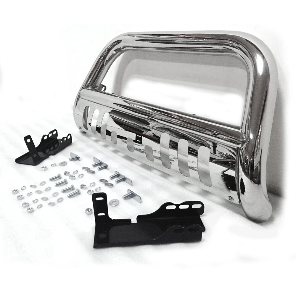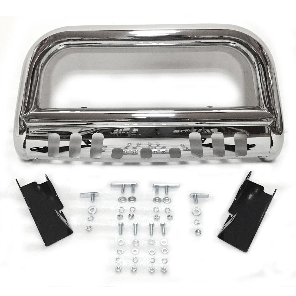 Introductions: Bull bar is a part for vehicles to reinforce and strength car structure. In addition, it is also a nice decoration. Therefore, more and more car owners prefer to select a highly cost-effective and stylish bull bar for their car. We are glad to share this Stainless Steel Front Bumper Bull Bar Grille Guard with you. Having accurately measured car size and in accordance with car radian, this bull bar grille guard will perfect fit for your car. It can effectively your car from any potential damage. Really full of aesthetics! Features: 1. New and in exquisite appearance 2. Stainless steel, delicate treatment, high-strength and durability 3. Precise measuring, fine workmanship, fit for 2007 Chevy Silverado 1500 New Body Models/2008-2013 GMC Sierra 1500 Models 4. Its perfect radian can well match your vehicle 5. Great to your car from any bump, shock and scratch etc. 6. An important decorative and protective part for vehicles Specifications: 1. Material: Stainless Steel 2. Color: Chrome 3. Tubing: Diameter: 3", Thickness: 1.35mm 4. Compatible with: 2007 Chevy Silverado 1500 New Body Models/2008-2013 GMC Sierra 1500 Models Package Includes: 1 x Front Bumper Bull Bar Guard 2 x Mounting Brackets 1 x Accessories