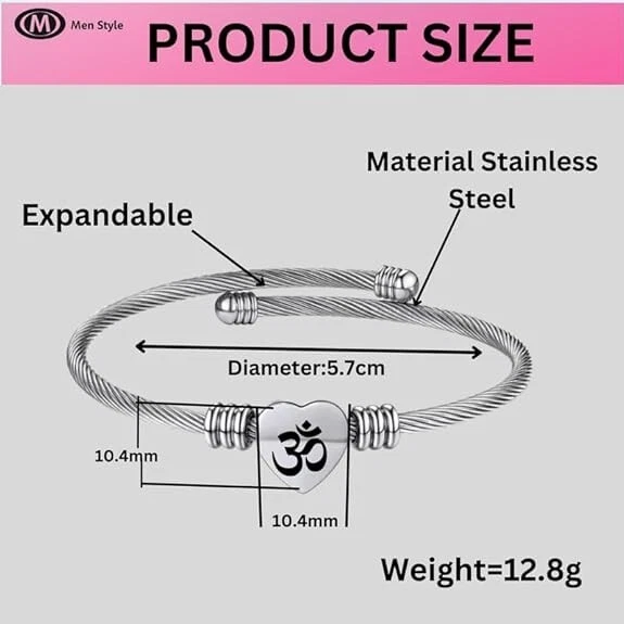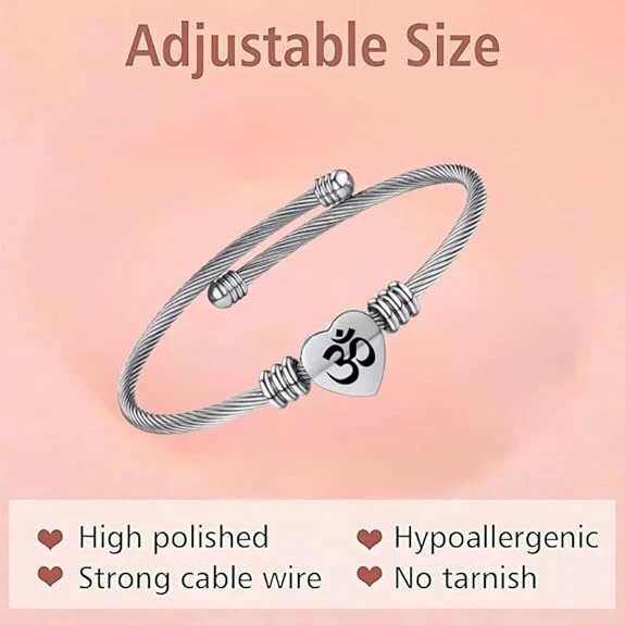 Stainless Steel Heart Om Bracelet Engraved Charm Bracelet for Women Silver