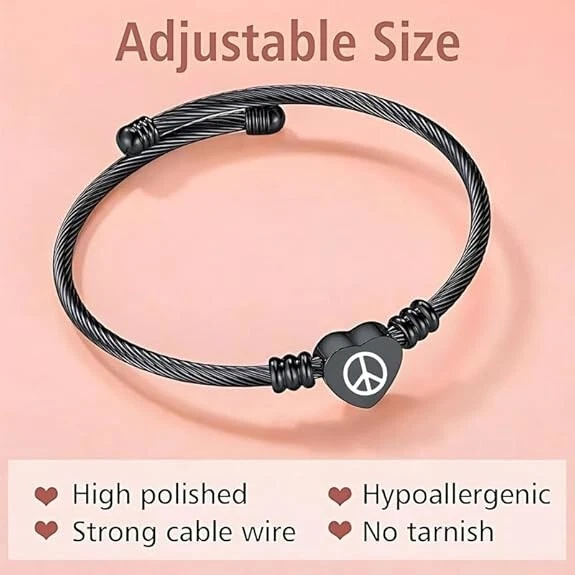 Stainless Steel Heart Peace Bracelet Engraved Charm Bracelet for Women Black
