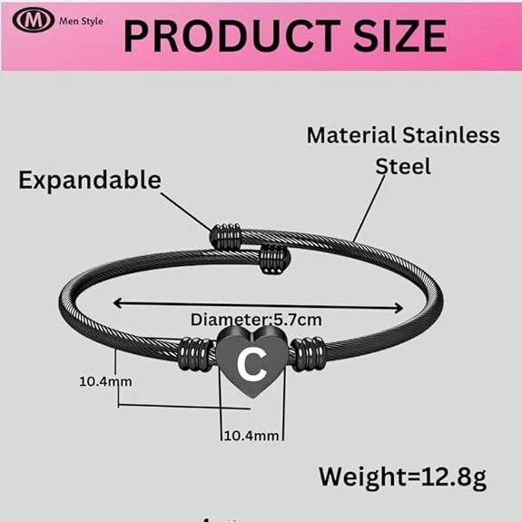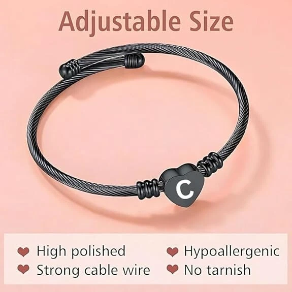 Stainless Steel Heart Word-C Bracelet Engraved Charm Bracelet for Women Black