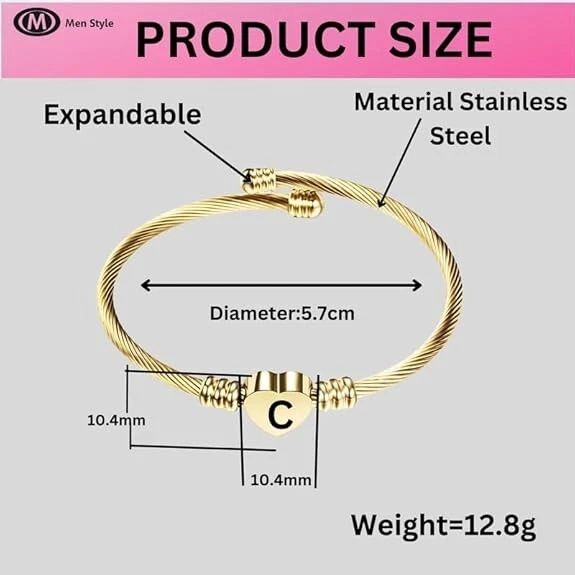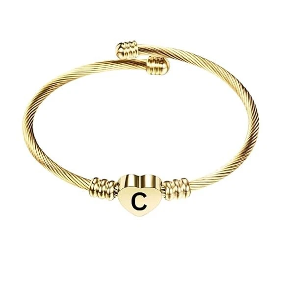 Stainless Steel Heart Word-C Bracelet Engraved Charm Bracelet for Women Golden