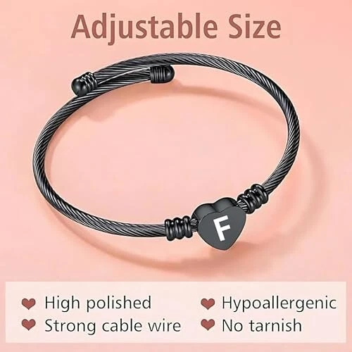 Stainless Steel Heart Word-F Bracelet Engraved Charm Bracelet for Women Black