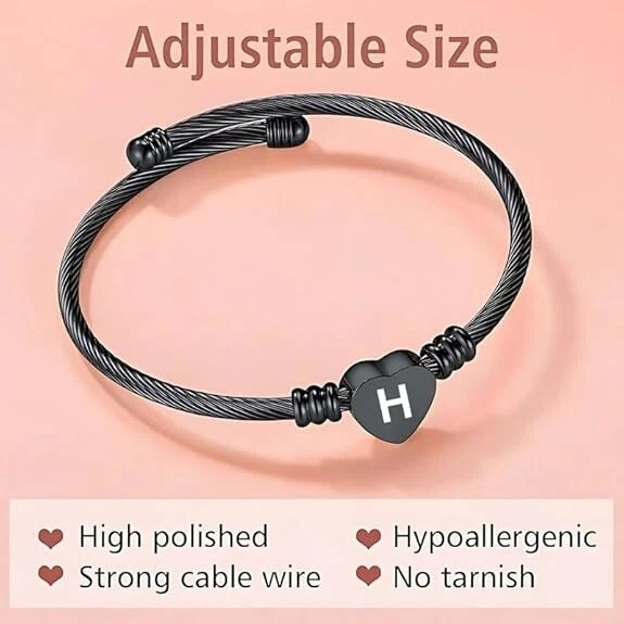 Elegant but cute bangle bracelet with heart charm, fashionable and perfect to bright up your overall outfit. This romantic heart design with adjustable size feature will make it great mother gift and best friend bracelet. Customizable: We can engrave some words on the heart charm for you. Size:The Letter Cuff Initial Bangle Bracelet is Expandable,You can use a soft ruler to measure the circumference of your wrist or ankle so that you can choose the product that suits you. Material: Alphabet Cuff Letter Initial Bangle Bracelet jewelry is made of high quality stainless steel which is 100% safe for sensitive skin ,and it has been electroplated so it will not fade,tarnish,rust or stain. This beautiful Letter Initial Alphabet cuff bangle bracelet can be as a fashion gift for mother or father or grandfather or grandmother or brother or sister or wife or husband or daughter or son and other loved ones.This charming anklet jewelry is suitable for all occasions, all kinds of anniversaries and all people like women,men,boys,girls,adults,elder people or children.For different people,it has different meanings and expresses different feeling. Packaging: We will carefully package the product, you don't have to worry about the jewelry charm being damaged. After-sales service: We sincerely serve you, if you have any other questions, you can contact us at any time, we are happy to serve you.