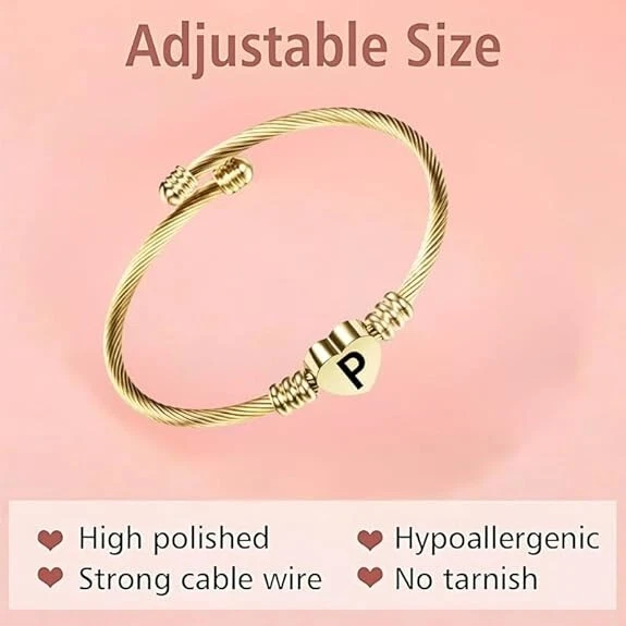 Stainless Steel Heart Word-P Bracelet Engraved Charm Bracelet for Women Golden