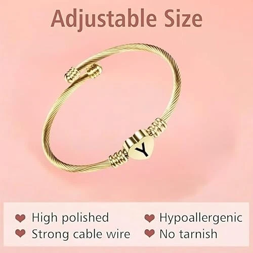 Elegant but cute bangle bracelet with heart charm, fashionable and perfect to bright up your overall outfit. This romantic heart design with adjustable size feature will make it great mother gift and best friend bracelet. Customizable: We can engrave some words on the heart charm for you. Size:The Letter Cuff Initial Bangle Bracelet is Expandable,You can use a soft ruler to measure the circumference of your wrist or ankle so that you can choose the product that suits you. Material: Alphabet Cuff Letter Initial Bangle Bracelet jewelry is made of high quality stainless steel which is 100% safe for sensitive skin ,and it has been electroplated so it will not fade,tarnish,rust or stain. This beautiful Letter Initial Alphabet cuff bangle bracelet can be as a fashion gift for mother or father or grandfather or grandmother or brother or sister or wife or husband or daughter or son and other loved ones.This charming anklet jewelry is suitable for all occasions, all kinds of anniversaries and all people like women,men,boys,girls,adults,elder people or children.For different people,it has different meanings and expresses different feeling. Packaging: We will carefully package the product, you don't have to worry about the jewelry charm being damaged. After-sales service: We sincerely serve you, if you have any other questions, you can contact us at any time, we are happy to serve you.