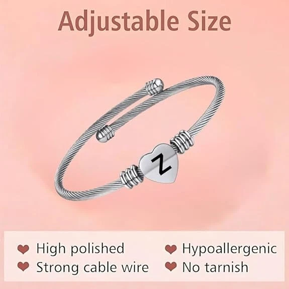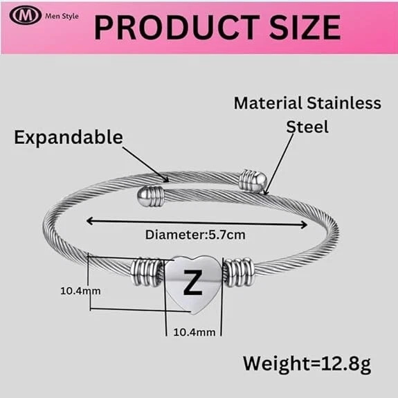 Elegant but cute bangle bracelet with heart charm, fashionable and perfect to bright up your overall outfit. This romantic heart design with adjustable size feature will make it great mother gift and best friend bracelet. Customizable: We can engrave some words on the heart charm for you. Size:The Letter Cuff Initial Bangle Bracelet is Expandable,You can use a soft ruler to measure the circumference of your wrist or ankle so that you can choose the product that suits you. Material: Alphabet Cuff Letter Initial Bangle Bracelet jewelry is made of high quality stainless steel which is 100% safe for sensitive skin ,and it has been electroplated so it will not fade,tarnish,rust or stain. This beautiful Letter Initial Alphabet cuff bangle bracelet can be as a fashion gift for mother or father or grandfather or grandmother or brother or sister or wife or husband or daughter or son and other loved ones.This charming anklet jewelry is suitable for all occasions, all kinds of anniversaries and all people like women,men,boys,girls,adults,elder people or children.For different people,it has different meanings and expresses different feeling. Packaging: We will carefully package the product, you don't have to worry about the jewelry charm being damaged. After-sales service: We sincerely serve you, if you have any other questions, you can contact us at any time, we are happy to serve you.