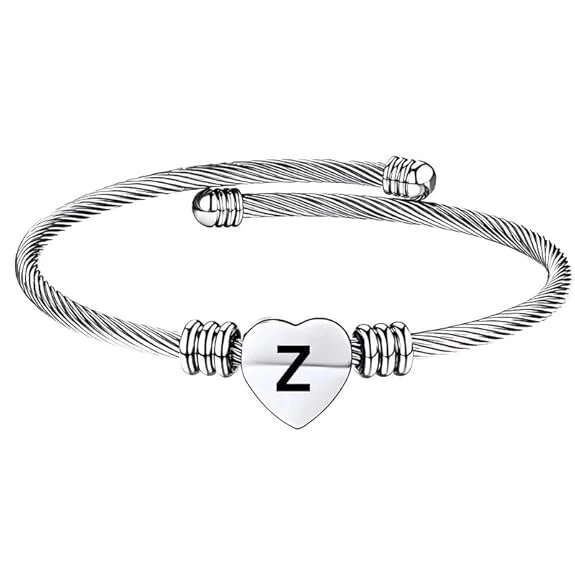Stainless Steel Heart Word-Z Bracelet Engraved Charm Bracelet for Women Silver