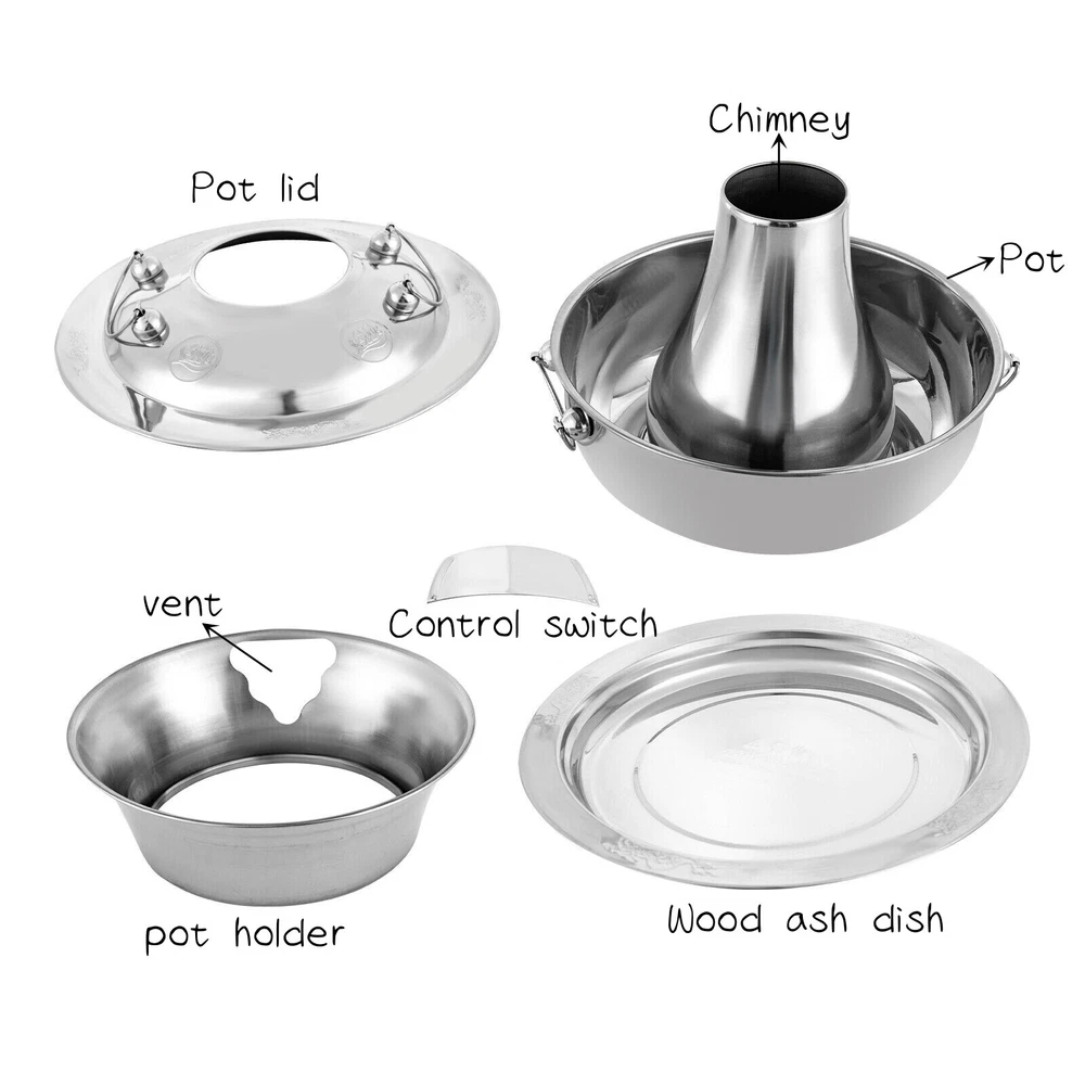 Stainless Steel Hot Pot Chinese Charcoal Hotpot Meats Fondue Party Picnic Cooker 2.3-QT Stainless Steel Hot Pot Chinese Charcoal hotpot, Meats Fondue Outdoor Picnic Cooker ——Description—— ??_In the cold winter, you can use this stainless steel hot pot to organize a family gathering. With it, you can not only feel the cozy warmth but also taste the original taste of nature. In the usual camping picnic, you can also take it to enjoy the delicious taste you can not taste in the city. ——Key Features—— High-quality Material This product is made of high-quality stainless steel, with high hardness, high thermal conductivity, high safety, and corrosion resistance. Easy to Assemble The simple product structure and complete installation parts can help you install it quickly and accurately. E asy to Clean The detachable design and smooth , flat surface make it easy to clean. You can simply wipe the surface with a rag and water to remove stains and charcoal dust. Heat Insulation and Anti-scalding The handle on the lid and body of the pot can effectively play the role of heat insulation and anti-scalding, making your cooking safer. Application This product is suitable for family gatherings, dinners, birthdays, and other parties, and can bring you the warmth of winter . Ash Outlet Uniformly distributed circular ash outlet holes achieve effective dust collection, making it less likely to be clogged and easy to clean. ---------------------------???? What's More???? ------------------------ Fashionable Appearance: Our charcoal pot showcases a traditional Chinese retro shape and boasts a simple yet elegant appearance that complements various kitchen styles seamlessly. Enjoy Food: The way you cook with charcoal makes the taste of cooked food completely different from that of using an induction cooker. It makes the food taste fresher and more flavorful. Cooking around the stove allows you to enjoy your food while getting closer to your loved ones and friends. Even Heating: The round boiler design and enlarged curvature of the lower part heat food in all directions so that food cooks more evenly and quickly. ——Details—— Air Hole: The air hole at the bottom allows you to control the heat more easily by fanning. It can also ventilate and dissipate heat to enhance safety Charcoal Inlet: The 2.95-inch diameter charcoal inlet provides plenty of space for you to add the charcoal, preventing carbon from falling into the pan to soil the food. Deeper Charcoal Carrying Pan: A deeper charcoal carrying pan can be filled with water to cool to prevent burns on the table. ——Specification??—— Material: Stainless Steel Capacity: 3L/2.3QT Base Diameter: 26cm/10.24 in Height of Pot: 20cm/7.87 in Charcoal Inlet Diameter: 7.5cm/2.95 in Color: Silver Process: Polished Model: LKS-8380 Assembly Required: Yes Gross Weight: 1.84kg/4.1lbs Net Weight: 1.5kg/3.31lbs Product Size: 33.5*33.5*32cm/13.19*13.19*12.6 in Package Size: 34.5*33.5*25 cm/13.6*13.2*9.8 in Package Included: 1 * 2.3-QT Stainless Steel Hot Pot All Accessories for Installation How to Use 1. Wash the pot first, add about one-third of water to the pot, then cover it with a lid. (The purpose of adding water first is to prevent dry burning.) 2. Place 3-5 pieces of smokeless charcoal or charcoal in the middle of the pot, and then fill up the charcoal into the fire tube after the lit charcoal burns up, which can be used for 2-3 hours (note: depending on the quality of the charcoal). You can use coal or a coal stove to ignite or use alcohol and other items. 3. Once it is served, you can put the seasonings into the pot and fill it up with water (you can add warm or hot water to the soup, which helps the food cook faster). 4. When the hot pot is finished, remove the burning carbon from it and leave some of the soup or water in the pot until it cools down, then pour it out and clean it. Pay attention to the need to inject water into the charcoal ash tray and keep it, so that the charcoal ash falling into the tray can be extinguished in time. At the same time, a thermal insulation pad needs to be placed under the charcoal ash tray to prevent scalding the desktop. Notes This product does not contain charcoal. Please break the charcoal into small pieces, the maximum length should not exceed 1.57 inches. Please be careful to prepare a water source in advance to extinguish charcoal ashes that fall into the tray in time. Also, a heat insulation pad needs to be placed under the ashtray to prevent burning the table. When adding charcoal for the second time, please take care to poke the charcoal ash from the ash-bearing tray with a charcoal holder or uncover the charcoal ash with a charcoal holder to ensure air circulation, otherwise, it will cause the charcoal to burn with insufficient fire. If you want to speed up the cooking speed, you can add the cooked soup to the pot. This product is not suitable for minors. Minors must be supervised by an adult before using this product. After high-temperature use, the chimney will turn black, which is a normal physical phenomenon. If the product is not used for a long time, please clean it, air dry it and store it in a dry environment. When cleaning, please wipe with a soft cloth and do not use hard objects such as metal brushes to wipe, so as not to scratch the stainless steel surface. After using the hot pot in the field, please note that you must strengthen your awareness of fire prevention. Please allow the slight color difference caused by the shooting light and the 1-3 cm error due to manual measurement, and make sure you do not mind before ordering. Payment Delivery details Terms of sales About us Contact us Payment We accept ebay payment 。 Fees such as import duties, taxes are not included in the item price or shipping costs. These charges are the buyer's responsibility. Delivery details Shipping: 2-9 working days to: USA Terms of sales We maintain high standards of excellence and strive for hundred perce