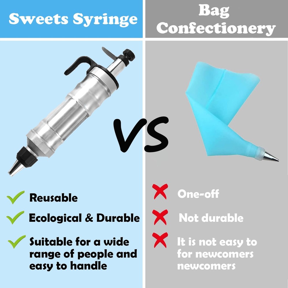 Product Description Brand: Material: stainless steel Colour: Type 1 Product Dimensions: 5.78 x 1.9 x 1.1 in Cake decorating kit: You will get a icing gun and 6 replaceable nozzles; This kit is enough for your cake, pastry, cupcake and biscuit decorating needs Safe and resistant materials: The cupcake decorating kit is made of food grade 304 stainless steel, BPA free, never rust, high temperature resistant and resistant; The food grade material allows you to use it with complete peace of mind Wide choice of patterns: The cake making kit has 6 replaceable nozzles that allow you to create a variety of patterns to match your desserts, making your desserts more beautiful and delicious Practical and easy to use: decorating tools can be used for decorating cakes, biscuits, breads and other kinds of desserts and sweets, and easy to use, you can use it with your family, friends and children and DIY, you will find that baking is so happy and fun Very nice gift: The cake icing tools are safe and resistant, very nice as a gift for bakers and baking enthusiasts on birthdays, christmas, vlentine's Day, Easter, Mother's Day, housewarming and so on, they will surely love this exquisite gift very much