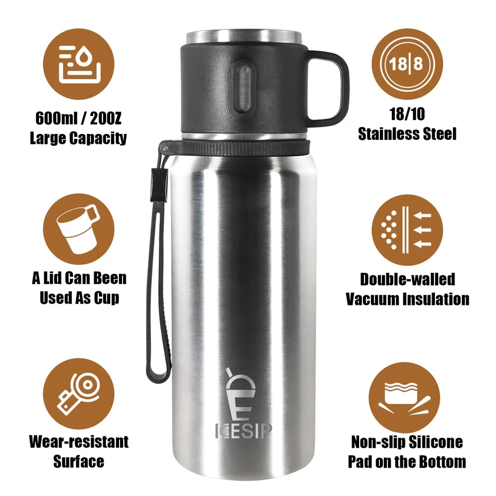 ☕【HOT AND COLD WATER BOTTLE】: Our Vacuum Insulated Water Bottle is the perfect everyday travel mug for your hot & cold beverages. Designed with high-quality 316 stainless steel, this tea & coffee bottle will maintain your beverage's temperature for up to 12 HOURS! Additionally, Thermos hot drinks comes with a cup for easy drinking, adding to its versatility. 🍵【Leak-Proof Worry Free】: The thermos bottle mouth has a food-grade silicone seals, that effectively prevent the insulated cup from leaking, so worry free about the insulated bottle will spill to wet your bag, desk, car, etc. 🧊【Hot-Proof Protect Hands】: The travel thermos owns high effect on insulation & hot-proof - stainless steel vacuum double-wall liner for best insulation, bottle body adopts matte non-slip coating for well grip hold and hot-proof to protect your hands. ☕【Easy to carry】:Our stainless steel water bottle is very suitable for daily use and can be taken with you,SuchasHiking,Biking,Beach,Camping,Travel,School or company,Put the portable hot drink cup in the side pocket of your backpack or as a daily companion to help you stay healthy and hydrated. 🍵【Perfect Gifts】:It is a good choice to express your care for friends and family with beautiful and practical gifts,Perfect gift for birthday,Christmas, Anniversary or other celebrations.