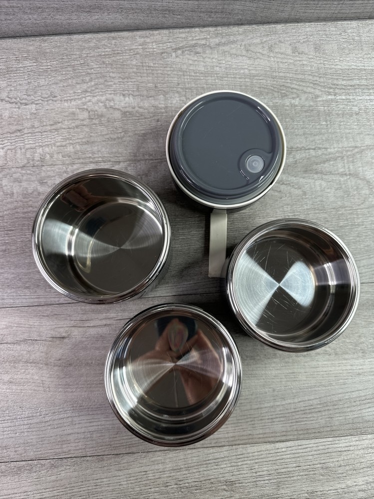 Tiffin Box Stainless Steel Insulated Lunch Box for Hot Food Gray Please see photos for details and condition. We welcome your correspondence so please feel free to message us with any additional questions. We do combine shipping on most of our listings so please see our other items and ask for an invoice prior to checking out so we can do this for you! Thank you, Finicky Fox Collectables LLC