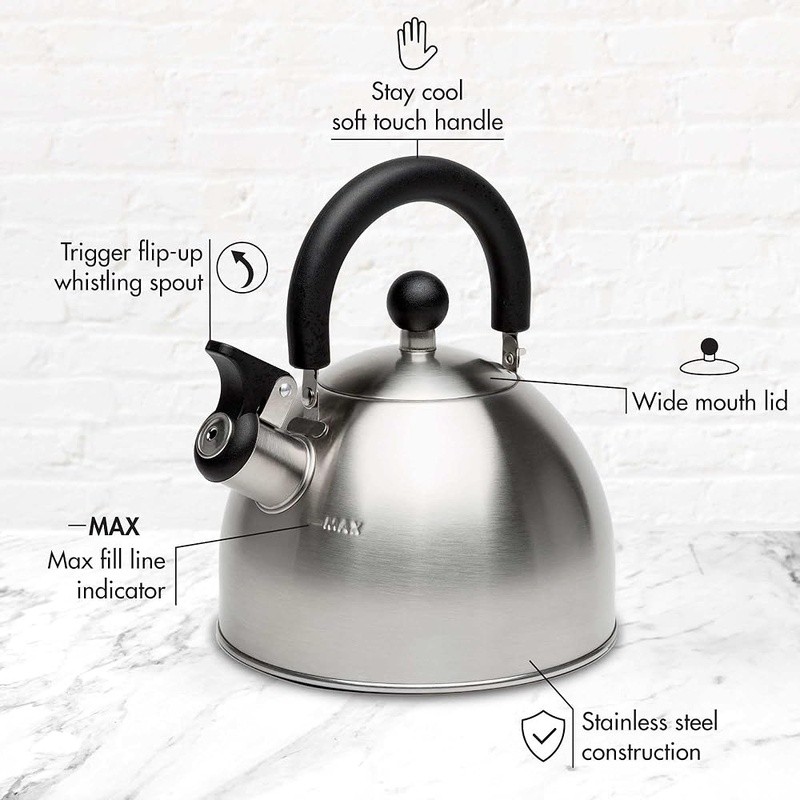 Cozy Electric Heating Blanket Faux Fur Soft Warm Throw Home Office Use 53.47 USD 57.49 USD Free shipping 7% off Bagless Upright Vacuum 720W Lightweight Multi Surface Cleaner 25ft Cord New 75.7 USD 81.4 USD Free shipping 7% off Soft Heated Blanket Twin Sherpa Electric Auto Off 5 Heat Settings Comfortable US 44.99 USD Free shipping Bulk 2-Ply Toilet Paper 96 Rolls 400 Sheets Soft Biodegradable Commercial Use 52.5 USD Free shipping Electric Heated Blanket Soft Warm Auto-Off 5 Heat Settings Safe Eco-Friendly New 44.99 USD Free shipping Convertible Futon Sofa Bed 3 Adjustable Positions Stain Resistant Compact Design 142.22 USD 152.92 USD Free shipping 7% off All Purpose Lawn Food 6-4-0 Fertilizer Slow Release Organic 32 lbs Non Burning 36.94 USD Free shipping Large Gravity Pet Waterer Dogs Cats Easy Clean Hydration System 4 Gallon New 36.94 USD Free shipping Adjustable Freestanding Rifle Rack Holds 10 Guns Easy Assembly Gun Display Stand 49.84 USD Free shipping 300ct Baby Wipes Light Fresh Chamomile Hypoallergenic Soft Thick Resealable New 11.92 USD Free shipping Men's Maximum Absorbency Guards 104 Count Discreet Breathable Incontinence Pads 18.57 USD 19.97 USD Free shipping 7% off Premium BBQ Apple Wood Chunks Smoking Grilling 500 Cu In Natural Flavor New 15.6 USD Free shipping About this item PREMIUM KETTLE BUILT FOR PERFORMANCE- The Stewart tea kettle is made of durable, food grade stainless steel that will last. EASY TO USE- This kettle will boil water in no time and features a flip-up whistling spout that easily opens when it’s time to pour. SIMPLE TO STORE: The folding handle makes it easy to store this kettle in a cabinet, drawer or pantry. EASY TO CLEAN- The wide mouth lid of the kettle makes cleaning a simple task, leaving enough room to easily empty and wipe dry the kettle between uses. It's that easy. LARGE CAPACITY- Great for entertaining and serving family and friends, the large capacity is perfect for making multiple cups of coffee or tea. The comfortable cool touch handle is easy to hold and grasp and makes serving safe and easy Color: Brushed with Black Handle Material: Stainless Steel Brand: Item Weight: 0.52 Kilograms Style: Classic You may also like Realistic Silk Aquarium Plants Set Freshwater Saltwater Fish Decoration New 40.78 USD 43.85 USD Free shipping 7% off Interactive Puppy Play Gym 8 Hanging Toys Bungee Suspension Indoor Fun Center US 45.99 USD Free shipping Soft Dog Car Seat Travel Bed W/ Safety Straps Removable Washable Design New 62.49 USD Free shipping Durable Metal Floor Gun Rack Vertical Display Stand Easy Assembly Organizer New 48.89 USD Free shipping 9A SDS Plus Rotary Hammer Drill 1100RPM 5300BPM Vibration Control 4 Modes New 62.24 USD Free shipping BBQ Spice Rubs Seasoning Sampler Gift Set Grill Lovers 24 Unique Flavors New 45.3 USD 48.71 USD Free shipping 7% off Adjustable Collapsible Clothes Drying Rack Stainless Steel Heavy Duty Foldable 69.99 USD Free shipping 12FT Inflatable Santa Sleigh W/ Reindeer LED Lights Christmas Decoration New 54.28 USD Free shipping Queen Duvet Cover Set 100 Cotton Green Gingham Check Hidden Zipper 3 Piece New 74.99 USD Free shipping 2-in-1 Adjustable Dumbbell Set W/ Kettlebell Converter Portable Weight Training 58.12 USD 62.49 USD Free shipping 7% off Mini Glass Bottles W/ Corks Decorative Message Vases DIY Gifts & Crafts New 55.98 USD Free shipping Smart LED Strip RGBIC Multicolor Flow Voice Control Sound Reactive 50ft New 27.45 USD 29.52 USD Free shipping 7% off