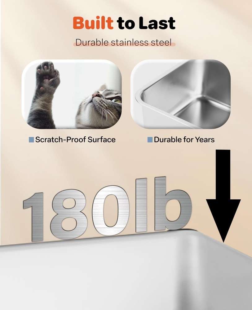 Premium Stainless Steel Cat Litter Box for a Cleaner, Odor-Free Home Say goodbye to messy cleanups with our high-sided stainless steel cat litter box. Its sleek, durable design prevents spills and splashes, making it perfect for cats who love to dig or aim high. The non-stick surface ensures litter won't cling, while the open and modern look blends seamlessly into any home decor. Built for easy cleaning and long-lasting use, it's the ideal choice for a fresher, stress-free environment for you and your feline companion. Large & Extra-Large Sizes for Every Need: Choose from two sizes of litter box—to find the perfect fit for your home. The extra-large cat litter box holds up to 36L of litter, making it ideal for big cats or multi-cat households. The large size, holding up to 24L, is great for medium breeds or single-cat homes. Both options minimize the need for constant litter refills, saving you time and effort Superior Leak-Proof Design: With 6.6-inch high walls, this metal litter box with enclosure effectively prevents urine or litter splashes, keeping your floors clean. The overlapping design between the steel litter pan and the lid forms a tight, leak-proof seal, ensuring no leaks occur through the seams. Say goodbye to messes and hello to a cleaner, more hygienic home Easy to Clean & Odor Control: Cleaning this cat box is a breeze. The smooth stainless steel surface ensures litter slides off effortlessly—nothing sticks. Just rinse with water for a spotless clean and wipe with a cloth for a residue-free surface. Plus, the material's odor control properties of stainless steel keep unpleasant smells at bay, leaving your home fresh and odor-free Durable Stainless Steel Construction: Crafted from high-quality stainless steel, this kitty litter box is built to last. Unlike some plastic covered litter boxes that scratch or crack easily, our stainless steel litter box is resistant to deformation, rust, and wear, ensuring long-lasting strength and durability. It’s the perfect choice for both you and your feline friend Open-top Design & Easy Access: Unlike enclosed cat litter boxes, we’ve chosen an open-top design to prevent odors from building up in a confined litter box. The low-entry side makes accessing the kitten litter box easier for elderly or short-legged cats. There are two buckles on the high sides which keep it tightly in place, so you won’t have to worry about your cat knocking it off while coming and going