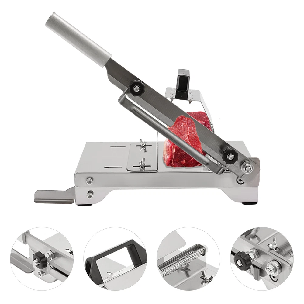 Stainless Steel Manual Frozen Meat Slicer Mutton Beef Thick Adjustable BBQ New Stainless Steel Manual Frozen Meat Slicer Mutton Ham Beef Cutter Cutting Machine Description The efficiency of meat cutting is low, your hands are prone to injury, and the thickness of the meat slices is difficult to control. Look at our manual frozen meat slicer. It is made of 430 stainless steel and aluminum alloy, so it is corrosion-resistant and sturdy. Its simple structure and smooth surface allow for quick installation and cleaning. If you are a hot pot lover and often go to the supermarket to buy sliced meat, you can make frozen meat at home and slice it with this slicer. Key Features Build to Last: The food-grade 430 stainless steel, aluminum alloy, and exquisite polishing process make this product wear-resistant, corrosion-resistant, rust-resistant, and safe to use, so it can withstand the test of time well. Adjustable Thickn ess: According to your wishes or different kinds of food, you can adjust the slice thickness from 0.3-8mm through two screws, allowing you to enjoy more variable meat. High Stability: Extended balance feet(2.56in), four non-slip sponge mats, U-shaped support frame can make it stably placed on the table, helping you to cut meat stable, without turning over, so you can use it confidently. Strong Fixation: Detachable and adjustable fixed brackets(1.57-6.69in) and the fixed splint with sawtooth can help you fix different types of food better and complete the cutting quickly. Compact and Lightweight: The compact size of 14.37*7.78*2.36 inches and the weight of 3.75 lbs allow for easy storage, saving you a lot of space, and you can carry it to different places. Easy Installation: The simple structure and complete installation parts allow you to quickly complete the installation and start to use it. Effortless Cleaning: The smooth surface and simple structure allow you to easily remove dust and residues with a towel and water. Ideal Gift: With good performance, this product can be used as a holiday or housewarming gift for family, friends, and lovers so that they can enjoy a more convenient life. Guaranteed Customer Service: We aim to provide quality products and services. If you have problems, please feel free to contact us. We will reply and solve the problem for you as soon as possible. Details Protective Film: It prevents the product from being scratched during transportation. Round Corners: The arc design can effectively care for your skin compared with the traditional square corners. Practical Spring: It allows for automatic meat delivery, saving effort and improving cutting efficiency. Ergonomic Handle: The extended aluminum alloy handle(16.14in ) is sturdy and durable and allows for a comfortable grip, saving effort and reducing fatigue even in long-term use. Application It can be used to cut carrots, cucumbers, potatoes, rice cakes, lotus roots, frozen meat, fish chunks, ribs, chicken chunks, etc. It is widely used in restaurants and homes. Specification Material: 430 Stainless Steel, Aluminum Alloy Style: Modern Shape: Rectangle Mounting Type: Tabletop Assembly Required: Yes Process: Polishing Number of Items: 1 Color: Silver Extended Balance Feet Length: 6.5cm/2.56in Stand Adjustable Range: 4-17cm/1.57-6.69in Adjustable Slice Thickness: 0.3-8mm/0.012-0.36in Handle Length: 41cm/16.14in Overall Size: 36.5*20*6cm/14.37*7.78*2.36in Package Size: 49*9*20cm/19.29*3.54*7.78in Gross Weight: 2kg/4.41 lbs Net Weight: 1.7kg/3.75 lbs Package Included 1 * Manual Frozen Meat Slicer 1* Chinese Manual All Accessories for Assembly Notes It cannot cut large bones, such as beef ribs, pig's trotters, large ribs, and bones. Please try not to cut hard fruits such as apples, otherwise, the blade will be damaged. It is recommended to wear gloves or a towel (not included)when cutting frozen meat. If the meat is not properly frozen, it would be difficult to achieve a clean cut. You can use a few drops of cooking oil(not included) on the food slicer blades and bearings for simple maintenance. Please do not touch the blade with your hand to test its sharpness. Please do not use hard cleaning tools to avoid scratching the surface. Please dry the water after cleaning and store it in a cool, dry place. Please place it in a place that is not easily accessible to children. Please allow the slight color difference caused by the shooting light and 1-3cm error due to manual measurement, and make sure you do not mind before you place the order. Payment Delivery details Terms of sales About us Contact us Payment We accept ebay payment 。 Fees such as import duties, taxes are not included in the item price or shipping costs. These charges are the buyer's responsibility. Delivery details Shipping: 2-9 working days to: USA Terms of sales We maintain high standards of excellence and strive for hundred percent customer satisfaction. Feedback is very important to us. We hope that you contact us immediately before you give neutral or negative feedback, so that we can address your concerns. It is impossible to address issues if we do not know about them! About us Your satis faction is our ultimate goal. We work hard to earn your trust and future business. Our certified technicians have tested each item before shipping. The unit comes with 1 year limited warranty on all manufacturing defects. a) If you receive a defective item, you may return it or ask for a discount. Please contact us within 14 days after you receive the package. b) What you returned must be intact and in its original packaging as re? u. Customer is responsible for shipping costs of the returned item. c) We will cover the cost of shipping back t with the shipping rate indicated in the registration page. We will send you a new unit or refund the full payment you paid. Thank you. Contact us Business Hour Business Hour: Monday To Friday: 8:30 AM to 5:00 PM (Beijing China time) Due to time zones, our reply to your questions may not be immediately. But withi