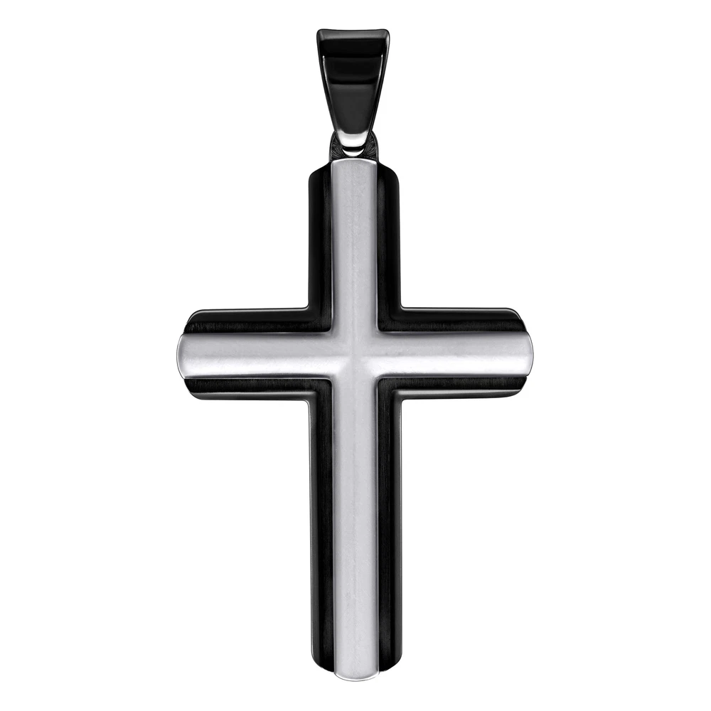 Stainless Steel Men's Rounded Cross Pendant Religious Charm | Color Options