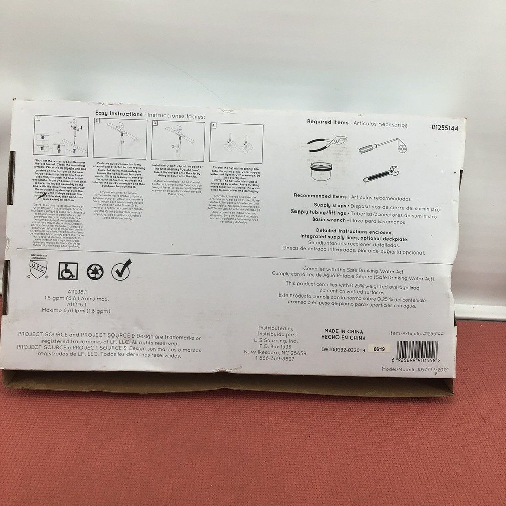 Stainless Steel PVD 1-Handle Deck Mount Pull-out Kitchen Faucet 67737-2001. Shipped with USPS Ground Advantage.