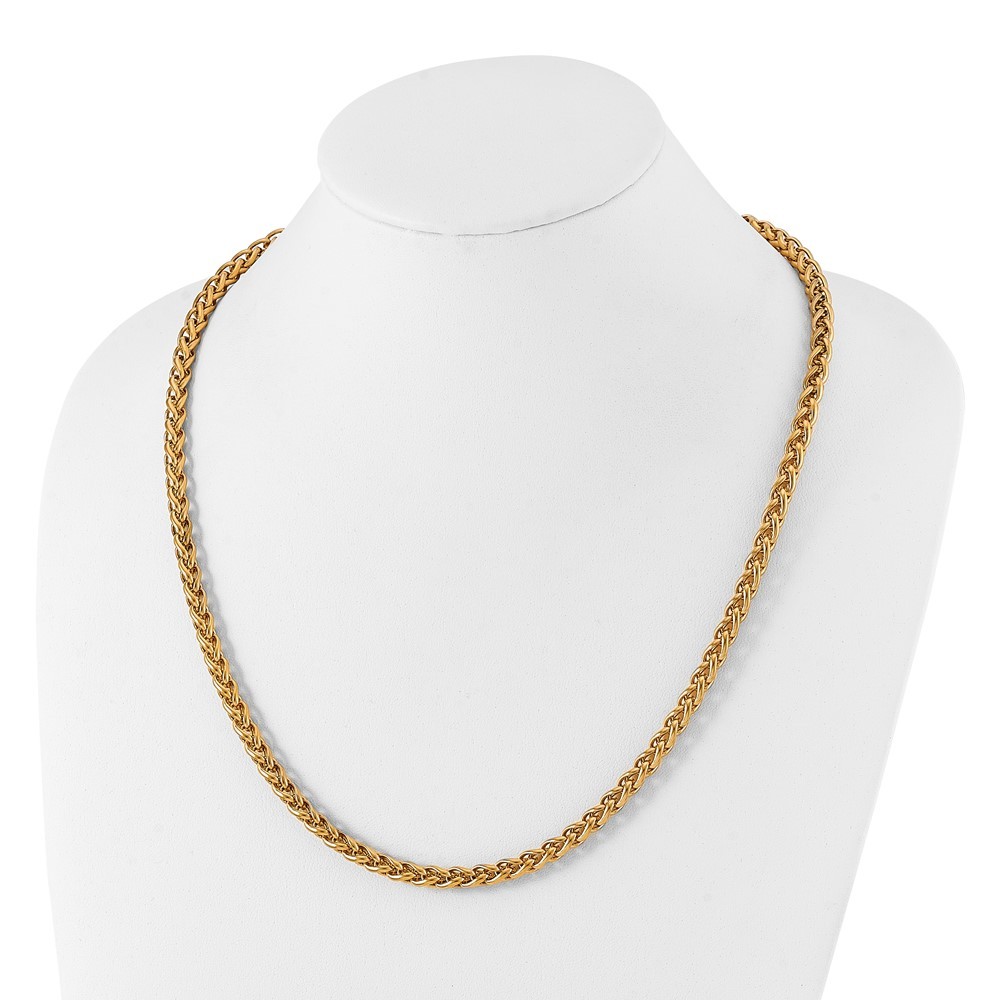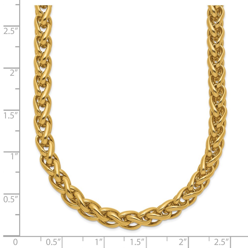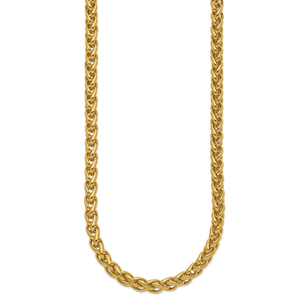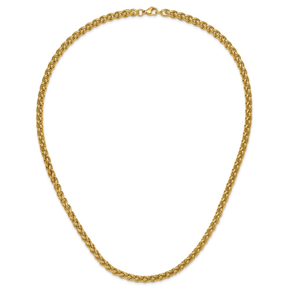 Finish:Polished|Length of Item:24 in|Chain Length:24 in|Chain Type:Spiga (Wheat)|Chain Width:6 mm|Clasp /Connector:Lobster (Fancy)|Material: Primary:Stainless Steel|Item Weight U/M:gm|Width of Item:6 mm|Packaging:Gift Boxed|Product Type:Jewelry|Jewelry Type:Necklaces|Sold By Unit:Each|Necklace Type:Chain Styles|Gender:Unisex|Material: Primary - Color:White|Plating Color:Gold Tone|Plating: Chain:IP-Plated All weights and measurements are approximate and may vary slightly from the listed information. Welcome to diamond_6720 Payments We accept all Ebay approved payment. Please sent the payment to us within 8 days after the auction has ended, or you will have unpaid case auto open by eBay. Shipping Policy We will ship all items within 1 business days of purchase during the work week (M-F) excluding holidays. If you order on Friday, your order will be shipped the following business day. Tracking will be provided when it becomes available. We will only ship to a PayPal Verified Address. Please make sure your address is current and correct. If the information does not match, your order may be canceled. Buyers are responsible for all customs, duties and taxes for your respective countries. Delivery times for International Shipping will vary. California Buyers Pay 9.0% Tax on all orders. case auto open by eBay. Return Policy & Exchange Returns or Exchange are accepted. Buyer must contact us within 30 days after the item is received. Item must be returned in unworn and resalable condition. We will only issue a refund for the purchase price, excluding any shipping fees. If we are at fault, we will provide a full refund. Buyer is responsible for all return shipping costs. BUYERS FEEDBACK If you have any concerns regarding your purchase, please contact us via eBay Message, we assure you that a satisfactory resolution will be reached. Your feedback is very important to us Do remember to give us 5 star rating(*****) if you are satisfied with our product & service .