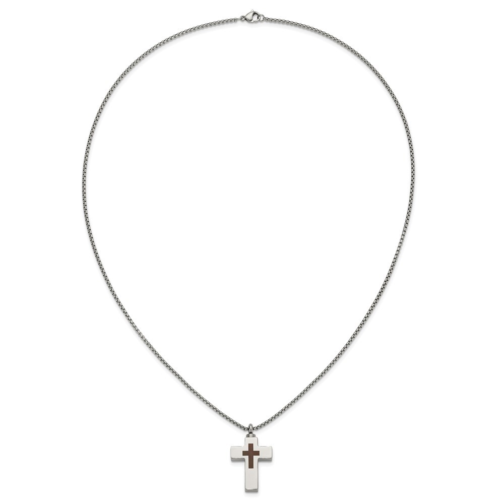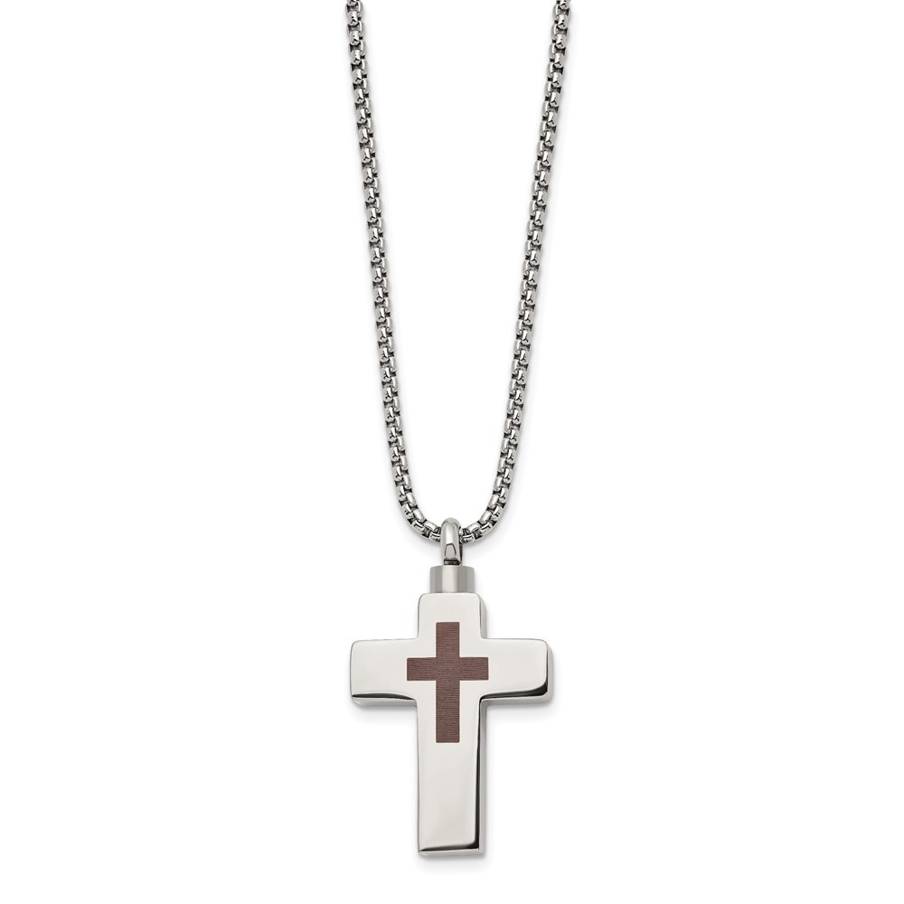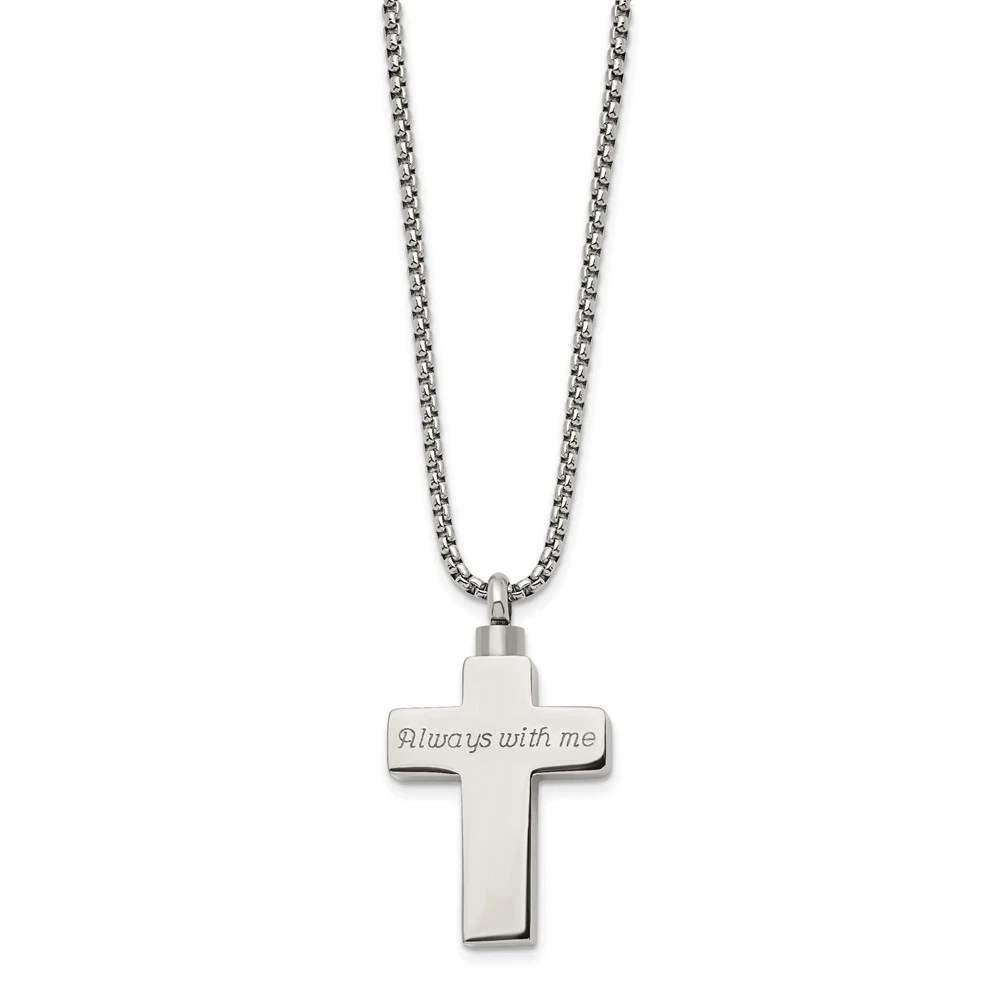 Stainless Steel Polished and Lasered Cross Ash Holder Box Chain Necklace 24"