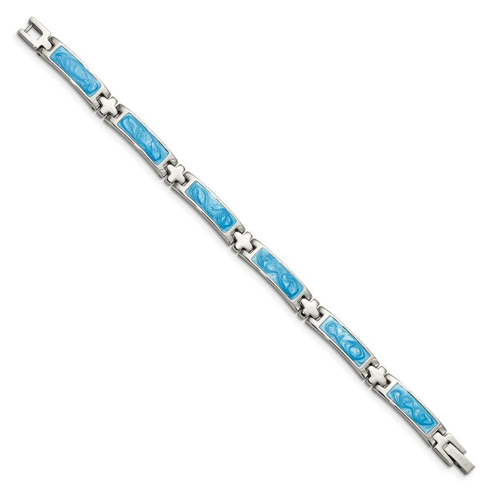 Finish:Polished|Length of Item:7.25 in|Material: Accents:Enamel|Material: Accent Color 1:Blue|Chain Length:7.25 in|Chain Type:Link, Other|Chain Width:6 mm|Clasp /Connector:Fold Over Catch|Material: Primary:Stainless Steel|Width of Item:6 mm|Packaging:Gift Boxed|Product Type:Jewelry|Jewelry Type:Bracelets|Sold By Unit:Each|Bracelet Type:Fancy|Gender:Women's|Material: Primary - Color:White|Items per Pack:1 All weights and measurements are approximate and may vary slightly from the listed information. Welcome to diamond_6720 Payments We accept all Ebay approved payment. Please sent the payment to us within 8 days after the auction has ended, or you will have unpaid case auto open by eBay. Shipping Policy We will ship all items within 1 business days of purchase during the work week (M-F) excluding holidays. If you order on Friday, your order will be shipped the following business day. Tracking will be provided when it becomes available. We will only ship to a PayPal Verified Address. Please make sure your address is current and correct. If the information does not match, your order may be canceled. Buyers are responsible for all customs, duties and taxes for your respective countries. Delivery times for International Shipping will vary. California Buyers Pay 9.0% Tax on all orders. case auto open by eBay. Return Policy & Exchange Returns or Exchange are accepted. Buyer must contact us within 30 days after the item is received. Item must be returned in unworn and resalable condition. We will only issue a refund for the purchase price, excluding any shipping fees. If we are at fault, we will provide a full refund. Buyer is responsible for all return shipping costs. BUYERS FEEDBACK If you have any concerns regarding your purchase, please contact us via eBay Message, we assure you that a satisfactory resolution will be reached. Your feedback is very important to us Do remember to give us 5 star rating(*****) if you are satisfied with our product & service .