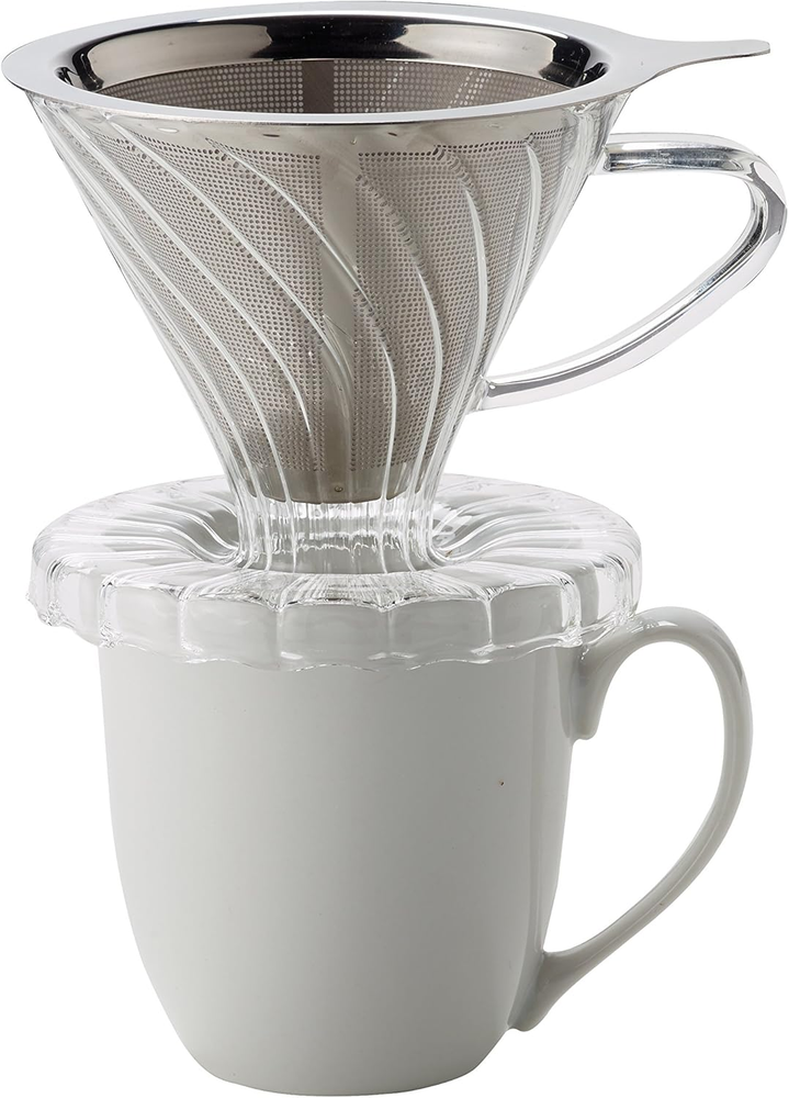 1. This pour-over coffee filter is a game-changer! The stainless steel construction feels sturdy, it brews smooth coffee with no papery taste, and it's super easy to clean (even dishwasher-safe). Perfect size for 4 cups, and no disposable filters mean eco-friendly savings. Love how simple it is to use—just pour, steep, and enjoy barista-quality coffee at home every morning. Highly recommend!