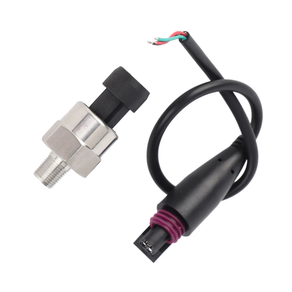 Feature: 1. It's an advance pressure transducer than traditional mechanical pressure transducer 2. ±2%FS small output error, including nonlinear, hysteresis error and repeatability, full temperature range 3. Light weight and small size, convenient to install and operate 4. It has complete surge voltage protection function 5. Works for oil, fuel, diesel, gas, water, air pressure, can be used in oil tank, gas tank, diesel tank etc Specification: Features: It's an advance pressure transducer than traditional mechanical pressure transducer. ±2%FS small output error, including nonlinear, hysteresis error and repeatability, full temperature range. Light weight and small size, convenient to install and operate. Works for oil, fuel, diesel, gas, water, air pressure, can be used in oil tank, gas tank, diesel tank etc. Specifications: Material: Stainless steel Thread Type: 1/8" NPT 30 psi Input: 0-30 psi Accuracy: within 2% of reading (full scale). Thread: 1/8"-27 NPT. Wiring Connector: Water sealed quick disconnect. Mating connector is included. Wiring: Red for +5V; Black for ground; Blue for signal output. 100 psi Input: 0-100 psi Accuracy: within 2% of reading (full scale). Thread: 1/8"-27 NPT Wiring Connector: Water sealed quick disconnect. Mating connector and wire harness (pigtail) is included. Wiring: Red for +5V; Black for ground; Blue for signal output. 150 psi Input: 0-150 psi Accuracy: +/-0.5%FS Thread: 1/8" NPT Wiring: Red for +5V; Black for ground; Green for signal output Overload Capacity: 2-4 times of rated pressure Working Temperature: -40℃~+120℃ Compensation Temperature: 0℃~+80℃ Protection Class: IP67 Pressure Medium: Oil, gas and water which is compatible with 316L stainless steel Load Resistance: ≤(supply power-6.5V/0.02A)Ω Long-term Stability: Less than 0.1%FS/year Temperature Effect on Zero: Typical:0.02%FS/℃; Maximum:0.05%FS/℃ Temperature Effect on Sensitivity: Typical: 0.02%FS/℃; Maximum: 0.05%FS/℃ Shock Resistance: 1000g Anti-Shock: ≤+/-0.01%FS(X,Y,Z axes, 200Hz/g) Response Time: ≤1ms Insulation Resistance: >100mΩ 500VDC Explosion-proof Class: ExiaTTCT6 Electromagnetism Compatibility: EN50051-1 200 psi Input: 0-200 psi Working Temperature: -40~+125℃ Accuracy: ±1%FS Thread: 1/8"-27 NPT Overload Capacity: 2 times of rated pressure Pressure Medium: Oil, gas and water which is compatible with 316L stainless steel Load Resistance: ≤(supply power-6.5V/0.02A)Ω Long-term Stability: ± 0.2%FS/year Temperature Effect on Zero: Typical: ±0.02%FS/℃; Maximum: ±0.05%FS/℃ Temperature Effect on Sensitivity: Typical: ±0.02%FS/℃; Maximum: ±0.05%FS/℃ Shock Resistance: 100g Anti-Shock: ≤±0.01%FS(X,Y,Z axes, 200Hz/g) Response Time: ≤1ms Insulation Resistance: >100mΩ 500VDC Explosion-proof Class: ExiaTTCT6 Electromagnetism Compatibility: EN50081-1; EN50082-2; IEC6 1000-4-3 Wiring Connector: Water sealed quick disconnect. Mating connector and wire harness (pigtail) is included. Wiring: Red for IN+; Black for GND; Green for OUT. 300 psi Input: 0-300 psi Accuracy: +/-0.5%FS Thread: 1/8" NPT Wiring: Red: +5V; Black: ground; Green: signal output Overload Capacity: 2-4 times of rated pressure Working Temperature: -40~+120℃ Compensation Temperature: 0℃~+80℃ Protection Class: IP67 Pressure Medium: Oil, gas and water which is compatible with 316L stainless steel Load Resistance: ≤ (supply power-6.5V/0.02A)Ω Long-term stability: Less than 0.1%FS/year Temperature Effect on Zero: Typical: 0.02%FS/℃; Maximum: 0.05%FS/℃ Temperature Effect on Sensitivity: Typical:0.02%FS/℃; Maximum:0.05%FS/℃ Shock Resistance: 1000g Anti-Shock: ≤+/-0.01%FS(X,Y,Z axes, 200Hz/g) Response Time: ≤1ms Insulation Resistance: >100mΩ 500VDC Explosion-proof Class: ExiaTTCT6 Electromagnetism Compatibility: EN50051-1. 500 psi Input: 0-500 psi (Gauge Pressure) Accuracy: +/-1%FS Thread: 1/8" NPT Wiring: Red for +5V; Black for ground; Yellow (Green) for signal output Overload Capacity: 2-4 times of rated pressure Working Temperature: -40℃~+120℃ Compensation Temperature: 0℃~+80℃ Protection Class: IP67 Pressure Medium: Oil, gas and water which is compatible with 316L stainless steel Load Resistance: ≤ (supply power-6.5V/0.02A)Ω Long-term stability: Less than 0.1%FS/year Temperature Effect on Zero: Typical: 0.02%FS/℃; Maximum: 0.05%FS/℃ Temperature Effect on Sensitivity: Typical: 0.02%FS/℃; Maximum:0.05%FS/℃ Shock Resistance: 1000g Anti-Shock: ≤+/-0.01%FS(X,Y,Z axes, 200Hz/g) Response Time: ≤1ms Insulation Resistance: >100mΩ 500VDC Explosion-proof Class: ExiaTTCT6 Electromagnetism Compatibility: EN50051-1. Package Includes: 1 x Pressure Transducer (With cable)