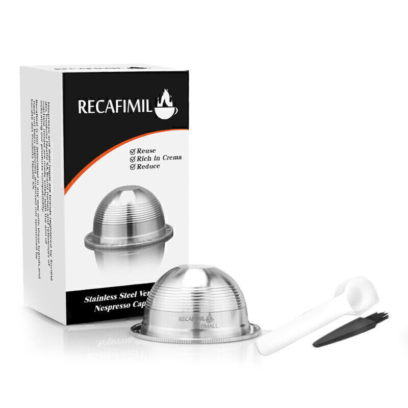 Product Description If you have any questions, please contact customer service first, do not open disputes easily, thank you! Description: 70ml refillable coffee pod capsule kit for Nespresso Vertuo Plus series. This is ESPRESSO's G version capacity model, the coffee volume is about 70ML. Made of 304 stainless steel material, more environmentally friendly than plastic, safe and durable. Reusable and easy to operate. Use finely ground coffee to get richer oil. You can use various coffee powders to make your favorite flavors. A middle cup of coffee powder can produce about 70ML coffee. Note: When filling coffee, it should be filled and compacted for use, so that more powder is filled, and the coffee effect is better. Applicable Model: Suitable for Nescafe NESPRESSO vertuoline GCA1 coffee machine, Delonghi ENV135 coffee machine, Delonghi ENV150, Nescafe vertuoplus BNV450WHT1BUC1 coffee machine. Package Contents: 1x Stainless steel capsule pod (metal cover) 1x Plastic brush 1x Tablespoon About Us We accept all payments authorized by eBay. powered by