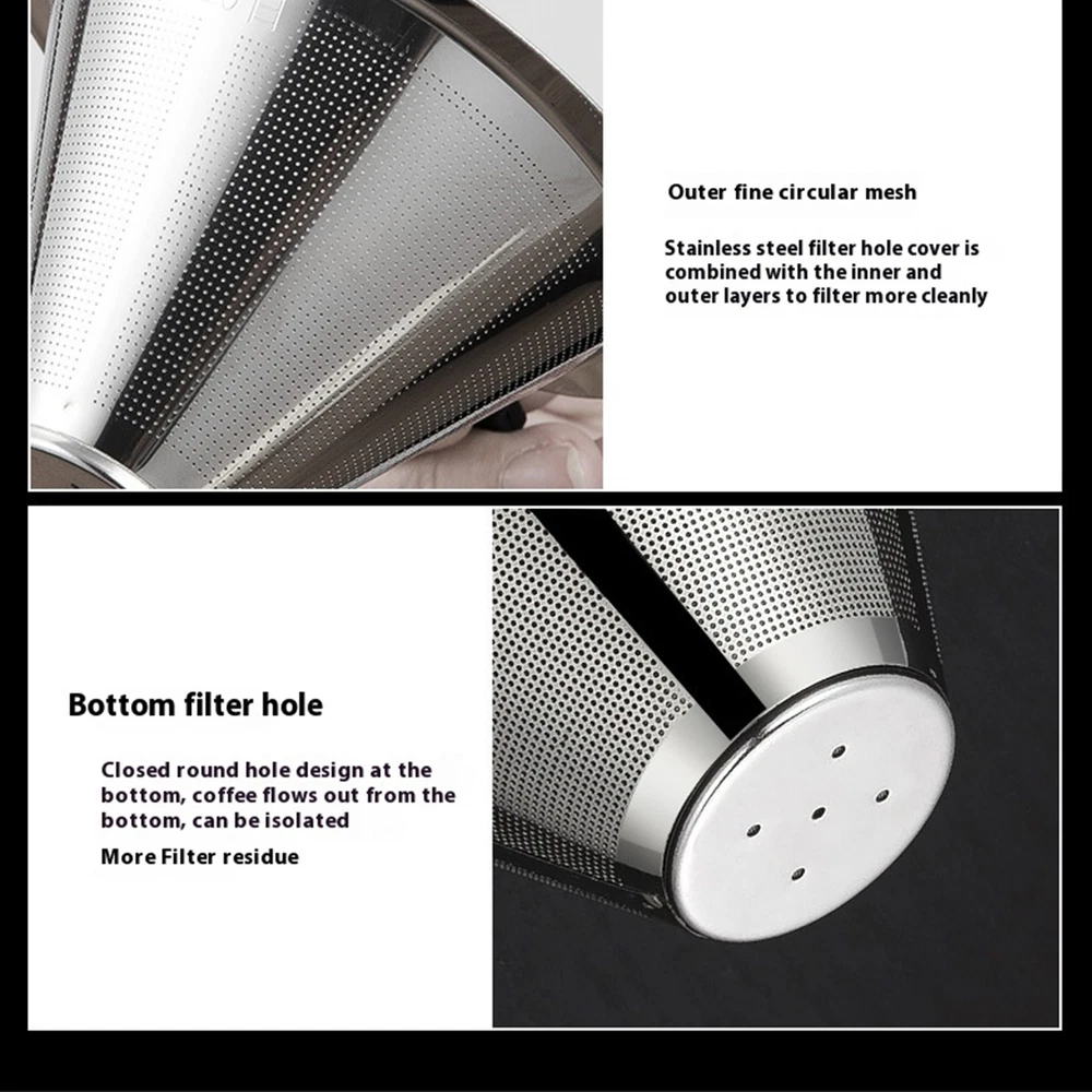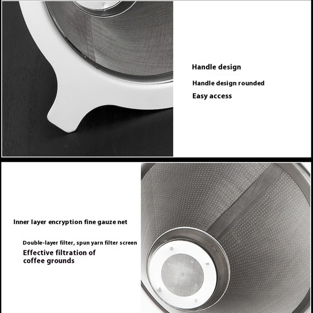 Pour Over Coffee Filter Stainless Steel Reusable Coffee Dripper Drip Cup Coffee Product Description Bullet Points: Filter Design: Upgrade your coffee experience with our stainless steel filter that boasts an advanced design of efficient filtration using a fine double mesh and bottom hole, ensuring a rich and flavorful cup every time. Sturdy Material: Our Stainless Steel Pour Over Coffee Dripper is made from long-lasting material, ensuring that it will not easily break or deteriorate over time, making it the perfect choice for coffee enthusiasts. Maintain with Ease: Our stainless steel coffee filter is built for simple maintenance, ensuring effortless upkeep—just wash it with water and it's good to go. Say goodbye to messy cleanups and welcome a hassle-free coffee-making experience. Effortless Portability: Enjoy your favorite brew anywhere with this sleek dripper; its portable design ensures it's small, lightweight, and easily storable. Versatile Brewing: Expertly designed to unlock the full potential of your coffee, this stainless steel dripper is ideal for aficionados of coffee, tea, and milk tea, ensuring a wide range of use. Our Stainless Steel Coffee Filter is made of a long-lasting material that gives an easy preparation. Simply wash it with water and it will be ready to use again. Its compact size also allows it to be conveniently stored. Specifications: Product name: Stainless Steel Coffee Filter Product style: A: 300 mesh - stainless steel double-layer filter screen B: 800 mesh - stainless steel double-layer filter screen Product size: about 11.8x10.2x6.2cm/4.65x4.02x2.44 inches Product material: stainless steel Product List: 1* Stainless Steel Coffee Filter Notes: Due to different lighting and screen settings, the product color may be slightly different from the picture. Due to the difference in manual measurement, please allow a 1-3cm difference in size. Payment 1.PayPal is a preferred Payment method. 2.You can make a Credit payment via Paypal.Paypal will let you use MasterCard,Visa to pay. 3.Payment should be completed within 3 days after auction closed, or unpaid dispute will be filed for an closing auction.An unpaid case will be filled after 4 days. Delivery details 1. We ship to many countries. 2. Delivery Time: Ship from China via Speedpak to US (takes 8-12 days) Ship from China via others shipping method to other countries (takes 15-60 days) 3. If you want to choose another address, please leave us a message on ebay.Please check your shipping address carefully before checkout,it can't be changed if order completed. Seriously promise:Refund or resend will be offered if item still not arrive in 7-10 business days. Just send us an email,we will give you a satisfied solution as soon as possible. Return policy 1.All item comes with Basic 3 Months Sellers Warranty, if item defective in 3 months,We will offer replacement without extra charger (including shipping fee) After we receive the defective item. If item Defective after 3 Month, Buyers can still send it back, We will contact suppliers or Manufactory for Warranty. Buyers Might Need pay the Shipping fee For resend the replaced item. 2.If item DOA(Dead of Arrival), Buyers can return it in 30 Days, we will replace it with new item after we receive DOA item. Please Contact us Before you sent the item back. 3.All item can be returned for exchange only. The buyer has responsibility for all return shipping including DOA or defective return. About Feedback When you receive the item and satisfied with the product, please leave positive feedback and 5 scores DSR. We will leave a 5 Scores DSR feedback for you. If, for any reason you are not satisfied with your purchase, please contact via Ebay Message and we will do our best to resolve it. Please don't leave neutral or negative feedback without any communition with .