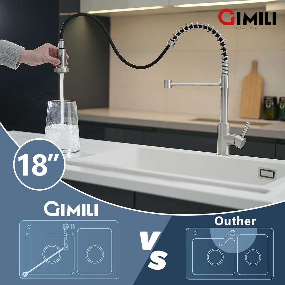 kitchen faucet High Quality Design:The brushed nickel sink faucet has exquisite special solid brass body design ,rust-resistant finishing. Two Function Sprayer: Kitchen sink faucets setting (STREAM, SPRAY), stream for filling water, spray for rinsing, providing stable water pressure, makes cleanup easier.From now on it will create a different kitchen cleaning experience. Flexible to Operate: High arc 360 degree swivel spout for full sink access, pull down sprayer to avoid splashing. It suitable both single bowl and double bowl kitchen sink. Also single handle design make its easy control the hot&cold water and flow volume. Easy to Clean: Brushed nickel finish & surface transition design prevent dirty / water stain from sticking to faucet surface, only cleaning faucet by cloth is enough in Daily Use. What will you get: we have the best team online at any time, and the professional after-sales team can solve any problems about the faucet for you.