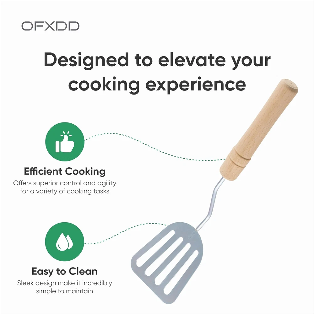 Stainless Steel Slotted Spatula - Kitchen Metal Turner for Cooking with Wooden H