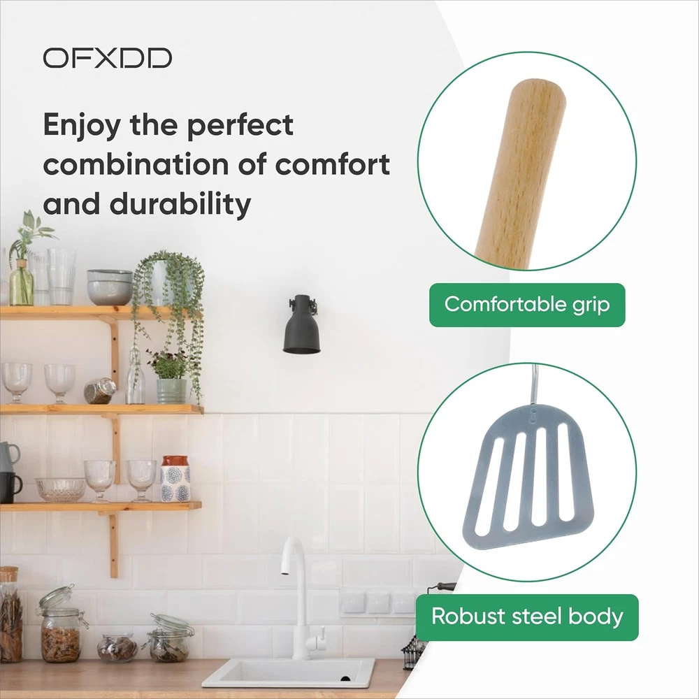 Store New Arrivals Add to Favorite View Feedback Contact Stainless Steel Slotted Spatula - Kitchen Metal Turner for Cooking with Wooden Handle Description Color Brown, Silver Material Stainless Steel Is Dishwasher Safe Yes Item Weight 2.08 ounces Handle Material Wood Package Dimensions 11.02 x 2.52 x 1.89 inches Size large Our metal cooking spatula is dishwasher safe and provides quick and easy cleanup when cooking with any foods. Whether effortlessly flipping a burger or sauteing a medley of summer vegetables, this stainless steel turner will work sensationally with all your cookware. You can either choose to clean this metal slotted spatula by hand or you can use your dishwasher without any problems. Front edge of slotted turner stainless steel is very thin and angled, making it easy to get under foods for flipping and turning. Stainless steel construction of wooden handle spatula prevents rust while a wooden handle provides comfort. The handle of metal spatula wooden handle is made at the perfect length to keep your hands on a safe distance from heat and still gives you maximum control over your food. The wooden handle of turner spatula stainless steel is made at the perfect length to keep your hands on a safe distance from heat and still gives you maximum control over your food. The beveled head of steel spatula glides effortlessly under fish fillets and quesadillas, and transfers warm cookies from baking sheet to cooling rack with ease. This metal spatula turner is strong and durable, made to last for a long time. High quality stainless steel of stainless steel spatula to ensure long-lasting use and a easy clean, they wont dent, crack, rust, or chip. The egg spatula stainless steel surface allows for easy food preparation or serving. This spatula stainless steel is perfect for flipping pancakes, fish, omelettes, wok stir-fry, BBQ and more and would not scratch pots and pans. The stainless steel slotted turner for flipping eggs, omelets, burgers, hash browns, pancakes and more. Easy lifting and flipping with our ergonomically designed metal turner spatula which allows you to handle your food conveniently. The stainless steel slotted spatula features a steel head that is perfect for picking up and flipping both large and small foods. Our metal cooking spatula is dishwasher safe and provides quick and easy cleanup when cooking with any foods. Whether effortlessly flipping a burger or sauteing a medley of summer vegetables, this stainless steel turner will work sensationally with all your cookware. You can either choose to clean this metal slotted spatula by hand or you can use your dishwasher without any problems.Front edge of slotted turner stainless steel is very thin and angled, making it easy to get under foods for flipping and turning. Stainless steel construction of wooden handle spatula prevents rust while a wooden handle provides comfort. The handle of metal spatula wooden handle is made at the perfect length to keep your hands on a safe distance from heat and still gives you maximum control over your food.The wooden handle of turner spatula stainless steel is made at the perfect length to keep your hands on a safe distance from heat and still gives you maximum control over your food. The beveled head of steel spatula glides effortlessly under fish fillets and quesadillas, and transfers warm cookies from baking sheet to cooling rack with ease. This metal spatula turner is strong and durable, made to last for a long time.High quality stainless steel of stainless steel spatula to ensure long-lasting use and a easy clean, they wont dent, crack, rust, or chip. The egg spatula stainless steel surface allows for easy food preparation or serving. This spatula stainless steel is perfect for flipping pancakes, fish, omelettes, wok stir-fry, BBQ and more and would not scratch pots and pans.The stainless steel slotted turner for flipping eggs, omelets, burgers, hash browns, pancakes and more. Easy lifting and flipping with our ergonomically designed metal turner spatula which allows you to handle your food conveniently. The stainless steel slotted spatula features a steel head that is perfect for picking up and flipping both large and small foods. ABOUT US We offer the best prices around on high quality products. Our E-store includes media such as books, movies, music and games while offering electronics, toys, sporting apparel, clothing, tools, general home, garden items and more. SHIPPING We are always working hard to ensure your package arrives as soon as possible. Please understand that some factors like weather, high postal traffic, and the performance of shipping companies are outside of our control. We offer free shipping to the lower 48 states and ship within 2 business days of payment, usually sooner. We do not accept P.O. Boxes. Please provide a physical address. For shipping outside of the continental USA, we only use eBay's Global Shipping Program.The item is shipped to KY and then sent to the rest of the world. International customers are responsible for all duties and taxes. Continue to check out in order to calculate costs for shipping the item to your country. Messages regarding eBay's Global Shipping Program MUST be directed at eBay EXCLUSIVELY. RETURNS We offer a 30-Day Return Policy on items which you are not completely satisfied with. You have the option for a full-refund or an exchange of the item. No returns are available on items shipped outside of the USA. PAYMENT We accept PayPal. CONTACT US This page content is yet to come Please ad us to your favorite seller and visit again later Thank You CUSTOMER SATISFACTION We try our very best to make sure every customer is completely satisfied. If there's a problem, message us! We're happy to help. WE ACCEPT Copyright © 2021 AutoDS. | All Rights Reserved