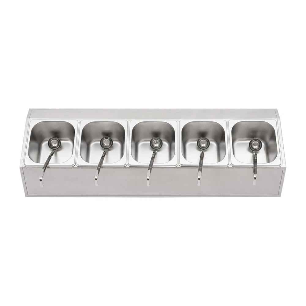 Spice Rack 5 Pans Stainless Steel Shelf Kitchens Seasoning Organizer Holder Description If your store is missing a practical and aesthetically pleasing spice rack shelf to help you organize and display your spices, then you can't miss this spice rack s helf . Made of high-quality stainless steel, this product has a large storage capacity that can hold up to 5 food trays. It will surely be your reliable kitchen helper to keep your countertops organized and your space tidy. Key Features Good Material: Premium stainless steel as well as the exquisite polishing process, make this product bright, wear-resistant , high-temperature resistant , safe to use, and less prone to rust and deformation, ensuring a long service life. Humanized Design: This product adopts the inclined design, which is clearer in sight and more convenient for picking up and placing items. In addition, the 5 pans are placed separately to effectively avoid cross flavors. Large Storage Capacity: This set contains 5 food pans, each with a capacity of about 0.9Qt, providing enough space for you to categorize your ingredients and seasonings. Good Stability: High-quality material and trapezoidal design make it have good stability, so you don't have to worry about shaking and tipping when you use it. Easy to Clean: The simple structure and smooth surface that does not easily adhere to stains, and detachable pans allow you to easily clean with water, a soft towel, and a dishwasher. Simple Installation: This product has a simple structure and complete accessories, you only need a few simple steps to install, which saves time and labor. Protective Packaging: The pearl cotton can better protect your product during transportation and make it delivered to you completely to the greatest extent. Good Customer Service: We stand behind all our guests and look forward to assisting you with your purchase. It is our pleasure to answer your confusion and questions. The end of the story between us is not "we sell and you buy". Details Convenient Spoons: All 5 spoons have hanging holes and curved handles for easy scooping of seasonings and storage to dry. Practical Lid: The lid prevents dust from getting into the pan and the handle on the top allows you to open and close it easily. Meanwhile, the seam fits the spoon very well, making it easy for you to place the spoon in the pan. Smooth Edge: The rounded and smooth edges not only add to the aesthetics of the product but also improve the safety of use. Application This product is suitable for organizing various ingredients and materials, including but not limited to seasonings, spices, sauces, jams, sweet soups, coffee beans, fruits, and vegetables. It can be widely used in homes, kitchens, restaurants, fruit stores, pantries, cafes, beverage stores, eateries, and more. Specification Color: Silver Style: Modern Shape: Trapezoidal Material: Stainless Steel Process: Polishing Assembly Required: Yes Is Dishwasher Safe: Yes Mounting Type: Freestanding Number of Pans: 5 Number of Spoons: 5 Each Pan Capacity: 0.85L/ 0.9Qt Gross Weight: 3.7kg/ 8.16 lbs Net Weight: 2.9kg/ 6.39 lbs Package Size: 86*24.5*22 cm/ 33.86*9.65*8.66 in Product Size: 85.6*24.5*23 cm/ 33.7*9.6*9.1 in Package Included 1* Spice Rack Shelf 5* Pans 5* Lids 5* Spoons Notes Please allow the slight color difference caused by the shooting light and the 1-3 cm error due to manual measurement, and make sure you do not mind before ordering. Payment Delivery details Terms of sales About us Contact us Payment We accept ebay payment 。 Fees such as import duties, taxes are not included in the item price or shipping costs. These charges are the buyer's responsibility. Delivery details Shipping: 2-9 working days to: USA Terms of sales We maintain high standards of excellence and strive for hundred percent customer satisfaction. Feedback is very important to us. We hope that you contact us immediately before you give neutral or negative feedback, so that we can address your concerns. It is impossible to address issues if we do not know about them! About us Your satis faction is our ultimate goal. We work hard to earn your trust and future business. Our certified technicians have tested each item before shipping. The unit comes with 1 year limited warranty on all manufacturing defects. a) If you receive a defective item, you may return it or ask for a discount. Please contact us within 14 days after you receive the package. b) What you returned must be intact and in its original packaging as re? u. Customer is responsible for shipping costs of the returned item. c) We will cover the cost of shipping back t with the shipping rate indicated in the registration page. We will send you a new unit or refund the full payment you paid. Thank you. Contact us Business Hour Business Hour: Monday To Friday: 8:30 AM to 5:00 PM (Beijing China time) Due to time zones, our reply to your questions may not be immediately. But within above working time, we will reply your email within 24 hours. If it's non-workdays, please kindly be patient and wait till Monday. Please contact us with ebay message. Please feel free to contact us if you have any questions. Monday To Friday: 8:30 AM to 5:00 PM (Beijing China time) Due to time zones, our reply to your questions may not be immediately. But within above working time, we will reply your email within 24 hours. If it's non-workdays, please kindly be patient and wait till Monday. Please contact us with ebay message. Please feel free to contact us if you have any questions.