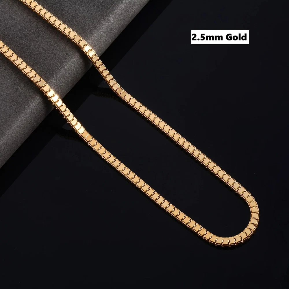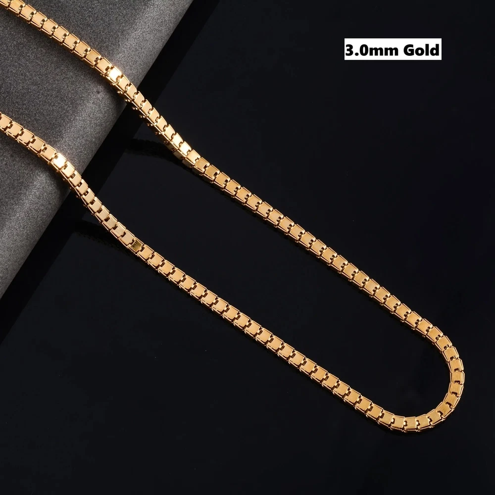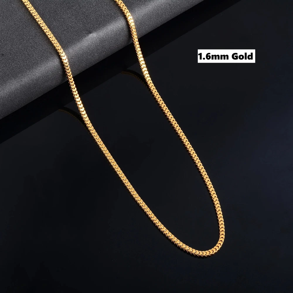 Welcome to our store...! Stainless Steel Silver | Gold Plated Box Chain Necklace - Unisex, Durable Lobster Clasp " Stylish and durable Stainless Steel Box Chain Necklace . Unisex design with a secure lobster clasp , perfect for everyday wear or pairing with pendants. Elegant and built to last! " Item Specifics: Condition : Brand New Available Color : Silver | Gold Plated Available Width: 1.6mm | 2.0mm | 2.5mm | 3.0mm Available Length: 40cm 16in | 45cm 18in | 50cm 20in | 55cm 22in | 60cm 24in | 65cm 26in | 70cm 28in | 75cm 30in Material : Stainless Steel Pendant: No Pendant Occasion : Daily | Casual | Party | Gift Package Includes : 1 Pcs NOTE: Please allow a little error due to manual measurement. Due to the light and screen difference, the item's color may be slightly different from the pictures. Thank you for understanding! To give you a rough idea about this product, before purchasing. ✔ Free shipping ✔ Delivery time is about 8-15 days (depends on your location) ✔ The item will be shipped within 3-5 business days ✔ Return shipping cost is free (For first return of each item) If you are going to buy this product, please be aware of the following points given below. SHIPPING: We will ship your purchased items to the shipping address listed on your eBay account. It's crucial to verify that your address and zip code are accurate and current. We offer free Economy Shipping. Delivery time is about 8-15 days and it depends on destination and other factors. For fast shipping options contact us. We guarantee that all packages will be shipped within 3-5 working days of payment clearance. We are very confident in our products, and we check every single piece and pack them very well, so usually you will receive your order in good condition. If you really have some problem, please contact us anytime, we will handle that for you in 24 hours. PAYMENT: For payments, We accept all payment methods supported by eBay. RETURN: 14-day return policy! Buy with confidence. If you are not satisfied with our product or service, please contact us within 14 days for return instructions and a full refund. Return shipping cost will be free for the first return of every order within the order protection period. A refund will be issued upon receipt of the returned item. We Kindly apologize for any inconvenience this may cause to you. CONTACT US: If you have any concerns or questions, please don't hesitate to contact us through eBay messages. We will respond to your messages within 24 hours. We apologize that maybe we are not available when you need help for the time difference. FEEDBACK: Please contact us first, to resolve any issues before leaving negative feedback or opening a dispute. If you feel satisfied with our products and service it is our pleasure to see your positive feedback. And we appreciate your indispensable support to us. To adorn elegance with timeless treasures, join us. We are Makeovermerch. https://www.ebay.com/usr/makeover_merch Thank you for your cooperation. Happy shopping!
