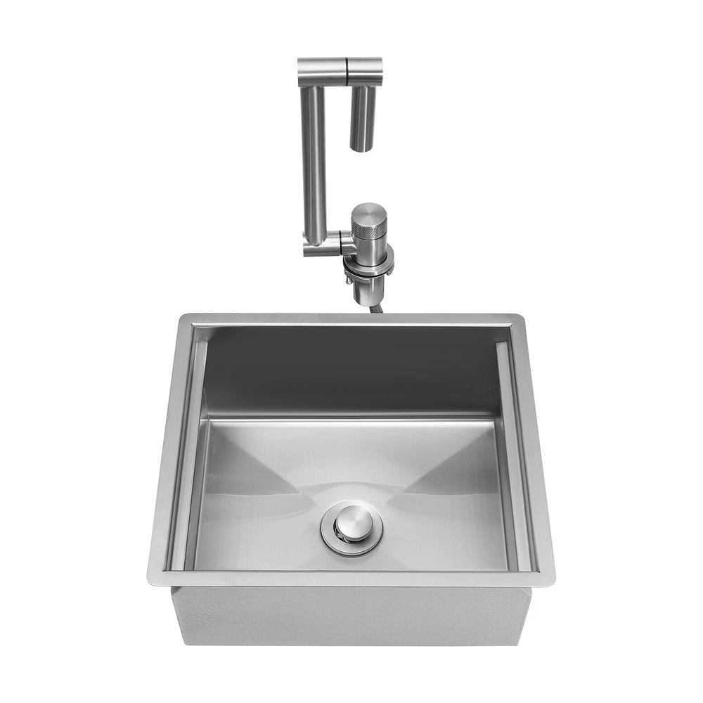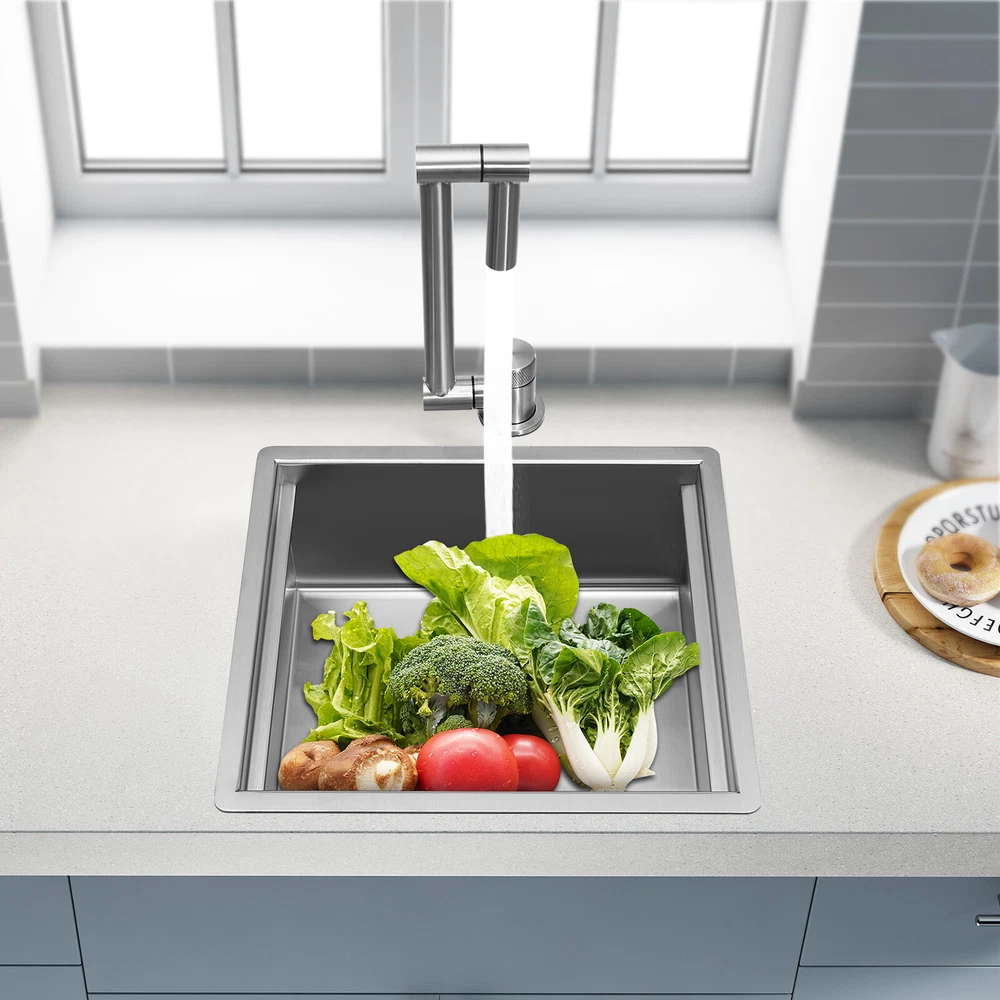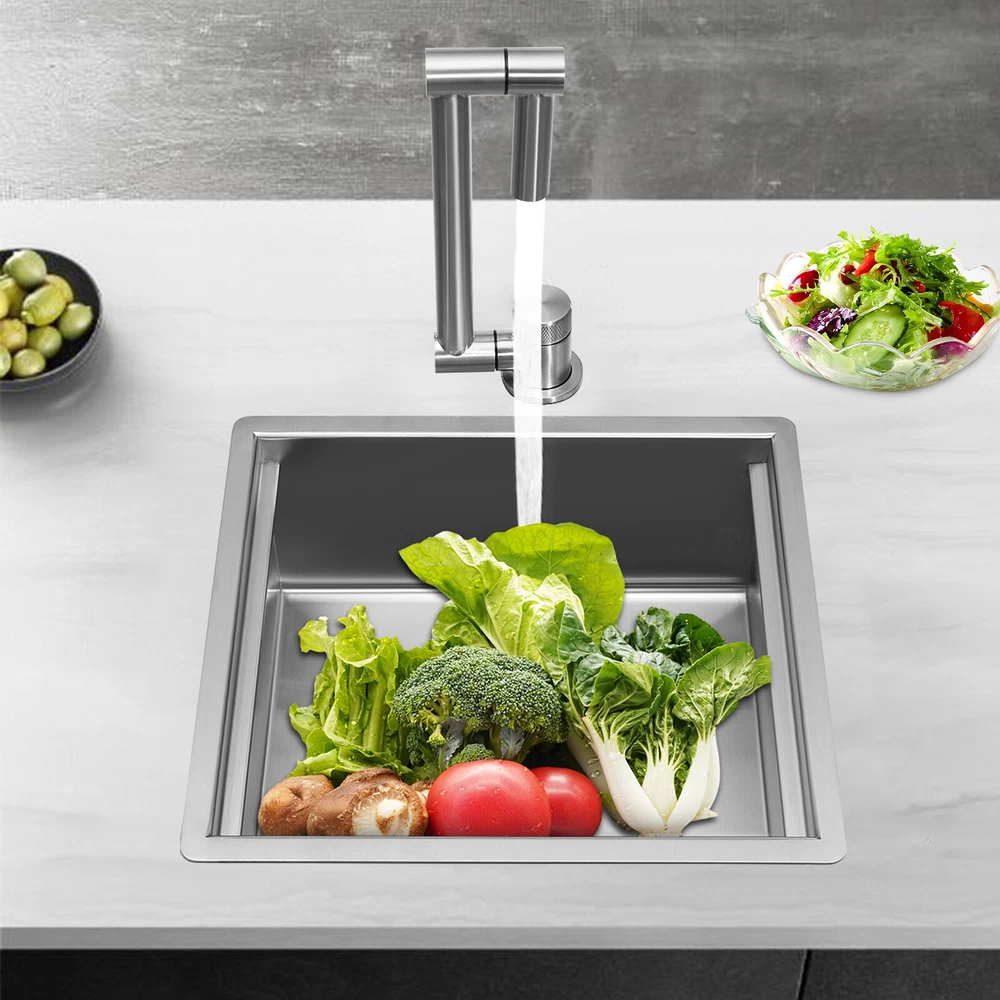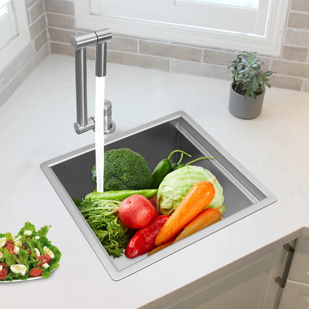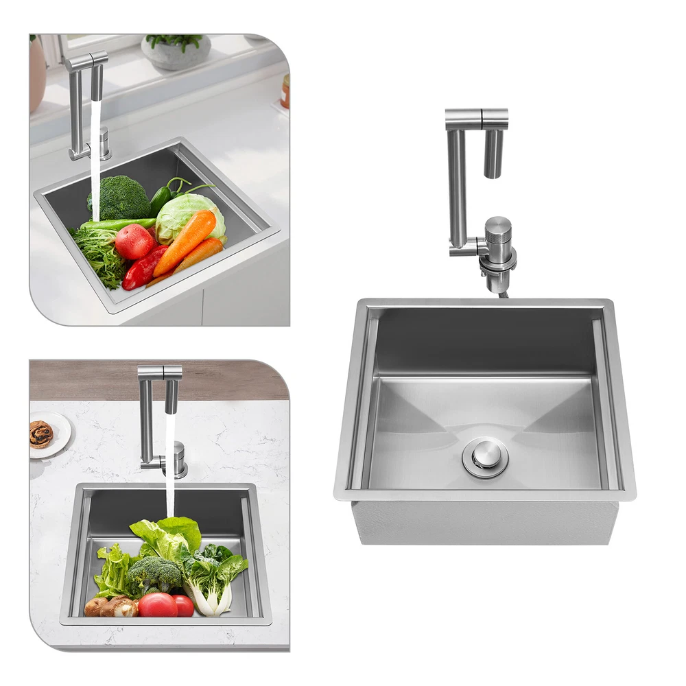Stainless Steel Square Hidden Kitchen Sink with Drain and Folding Faucet