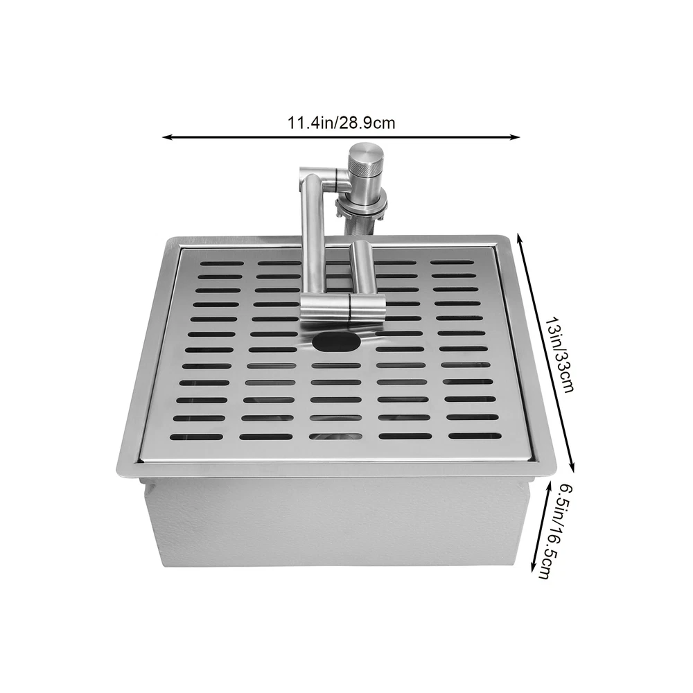 Square Covered Stainless Steel Hidden Kitchen Sink W/Drain Folding Faucet Indoor Welcome~ Description This 304 stainless steel sink is made of high-quality materials and adopts excellent workmanship, making it sturdy and corrosion-resistant. Its enlarged and deepened sink not only reduces water splashing but also increases the space for cleaning a lot of cookware. With it, you can enjoy a more convenient life. Key Features Build to Last: It is made of high-quality 304 stainless steel with a wire drawing process, so it has good corrosion resistance, oxidation resistance, and strength. It can be used in wet environments such as the kitchen and laundry room. Enhanced Load-bearing Capacity: It is made of sturdy construction and high-quality 304 stainless steel material, which can withstand large weights, so you can use it with more confidence. Large Capacity: The 11.4*13*6.5 inches product can hold a large number of dishes, making you more comfortable and efficient when washing. It is a great helper when you are cleaning dishes or preparing food. Thoughtful Design: The drainpipe can be freely bent, depending on the installation position, reducing use restrictions. The flexible 360° rotatable faucet spout and foldable faucet body allow you to clean every part of the sink. The pressing drain function works well to prevent foreign objects from clogging the pipes while preventing odors from being dispersed. Complete Set: The product package includes a sink, a faucet with hot and cold water pipes, a removable drainpipe and a drainboard, so you don't have to buy additional items, which greatly saves your time and money. Modern and Simple: The low-key silver color and smooth lines give this sink set a modern and simple appearance, which fits most household styles. Easy to Install: Its simple structure and complete installation accessories allow you to easily complete the installation in a short time. In addition, two different mounting ways (flush mount, under mount) can meet your different needs. Effortless Cleaning: The smooth surface and round corners allow you to easily clean it without leaving dead corners of dirt accumulation. Quality Service: We are honored that you have chosen our product. We have sufficient confidence in the quality of the product so that you can buy it confidently. But if you have any questions, you can contact our customer service, he will patiently answer and solve your problems. Details Practical Foldable Faucet: The faucet with hot and cold water pipes allows you to conveniently adjust temperature of the water with the help of the knob. Thickened Inner Wall: The 1mm thickened inner wall can provide better support and load-bearing force for the sink. X-shaped Water Guiding Line: It can guide water flow and form vortices to achieve rapid drainage. Drain Board : It comes with small holes in the surface, which is suitable for drying dishes and defrosting meats. Smooth Edge: The rounded and smooth edges not only add to the aesthetics of the product but also improve the safety of use. Application This product can be widely used in homes, restaurants, laundry rooms, basements, bars, kitchens, food trucks, dessert shops, coffee shops, hotels, garages, gardens, etc. for cleaning tableware, vegetables, fruits, etc. Specifications Material: 304 Stainless Steel Process: Wire Drawing Color: Silver Assembly Required: Yes Shape: Rectangular Mounting Type: Undermount, Flushmount Style: Modern Degree of Rotation of the Outlet Faucet: 360° Basin Thickness: 1mm/0.04in Drainpipe Length: 1m/3.28ft(Extension Length) Cold/Hot Inlet Pipes Length: 60cm/23.62in Overall Product Size: 28.96*33.02*2.56cm/11.4*13*6.5in Gross Weight: 6.6kg/14.55lbs Net Weight: 5kg/11.02lbs Package Size: 52*36*41cm/20.47*14.17*16.14in Package Included 1* 304 Stainless Steel Sink 1* Drain Board 1* Drainpipe 1* Faucet with Hot and Cold Water Pipes All Accessories for Assembly Notes Please check the size carefully before ordering. Please do not scratch its surface with sharp objects to obtain a longer service life. If you want to get a better installation result, we recommend that you hire a professional worker to install it. Please allow the slight color difference caused by the shooting light and 1-3cm error due to manual measurement, and make sure you do not mind before you order. Payment Delivery details Terms of sales About us Contact us Payment We accept ebay payment 。 Fees such as import duties, taxes are not included in the item price or shipping costs. These charges are the buyer's responsibility. Delivery details Shipping: 2-9 working days to: USA Terms of sales We maintain high standards of excellence and strive for hundred percent customer satisfaction. Feedback is very important to us. We hope that you contact us immediately before you give neutral or negative feedback, so that we can address your concerns. It is impossible to address issues if we do not know about them! About us Your satis faction is our ultimate goal. We work hard to earn your trust and future business. Our certified technicians have tested each item before shipping. The unit comes with 1 year limited warranty on all manufacturing defects. a) If you receive a defective item, you may return it or ask for a discount. Please contact us within 14 days after you receive the package. b) What you returned must be intact and in its original packaging as re? u. Customer is responsible for shipping costs of the returned item. c) We will cover the cost of shipping back t with the shipping rate indicated in the registration page. We will send you a new unit or refund the full payment you paid. Thank you. Contact us Business Hour Business Hour: Monday To Friday: 8:30 AM to 5:00 PM (Beijing China time) Due to time zones, our reply to your questions may not be immediately. But within above working time, we will reply your email within 24 hours. If it's non-workdays, please kindly be patient and wait till Monday. Please contact us with ebay message.