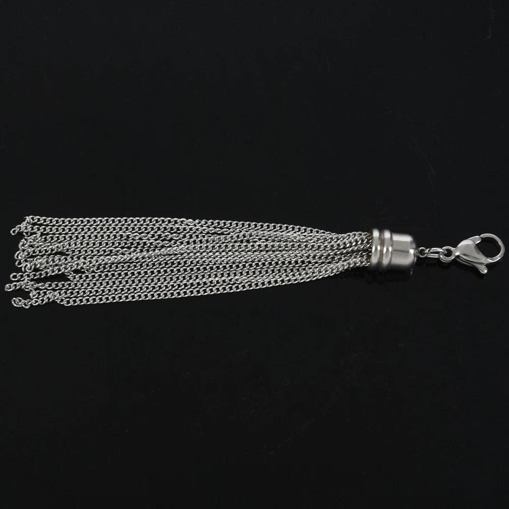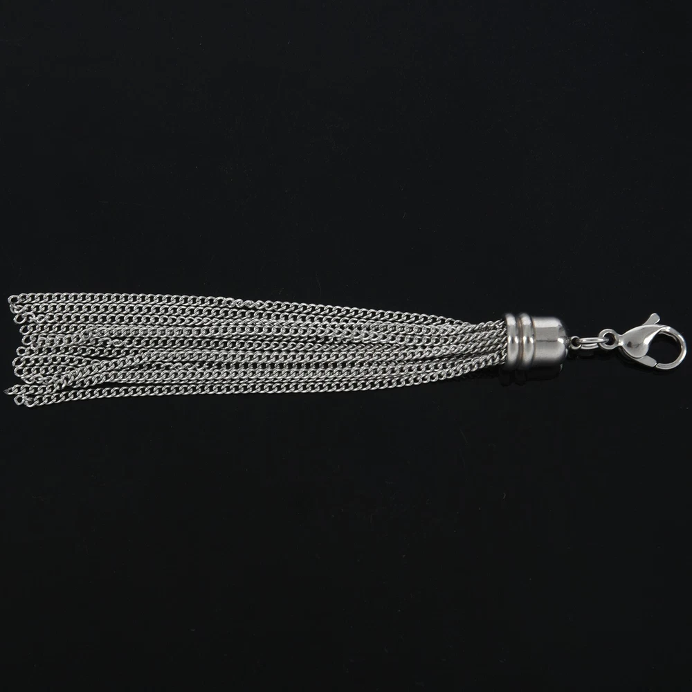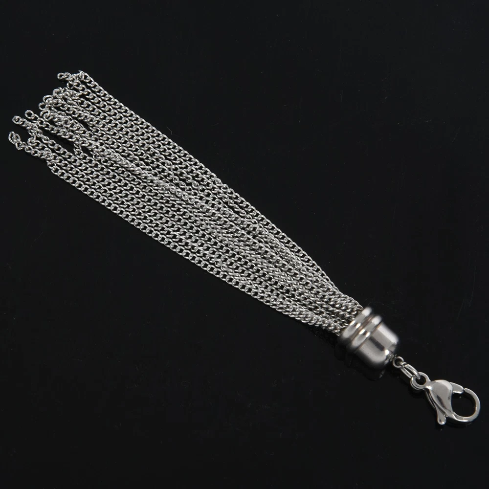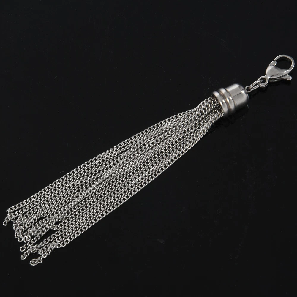 Stainless Steel Tassel Charm for Jewelry Making E4P46765 {LIS_PIC} High quality stainless steel,no fading,nondeformable,allergy free; Environmental protection,beautiful appearance,light weight,convenient installation.Beware of swallowing by children Perfect findings for a variety of jewelry making. Every findings has its unique design and style and theme, hence the jewelry made with them are unique and your own fashion. Material: Stainless Steel Color: Silver Size: 8.5cm(3 3/8inch) Package Contents: 1x Fringed lobster clasp pendant Note: Light and different displays may cause the color of the item in the picture a little different from the real thing. The measurement allowed error is +/- 1-3cm.