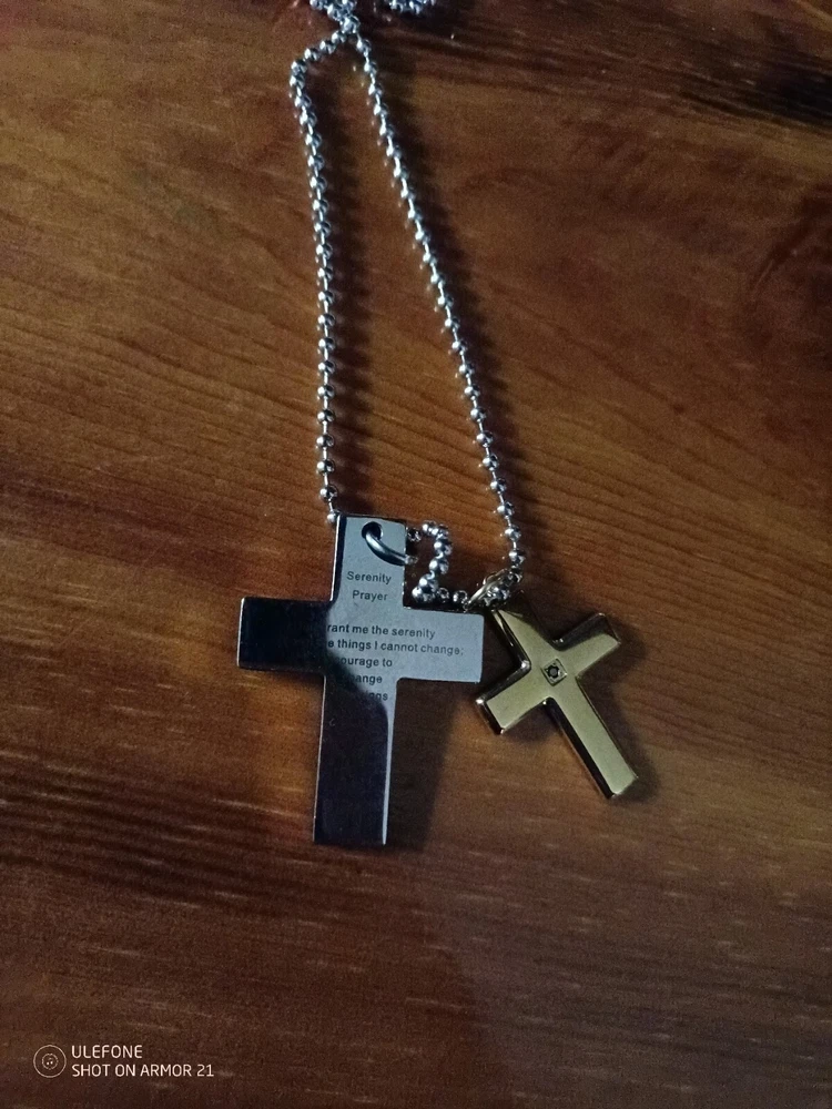 Stainless Steel The Serenity Prayer Cross Pendant, Free Bead Ball Chain