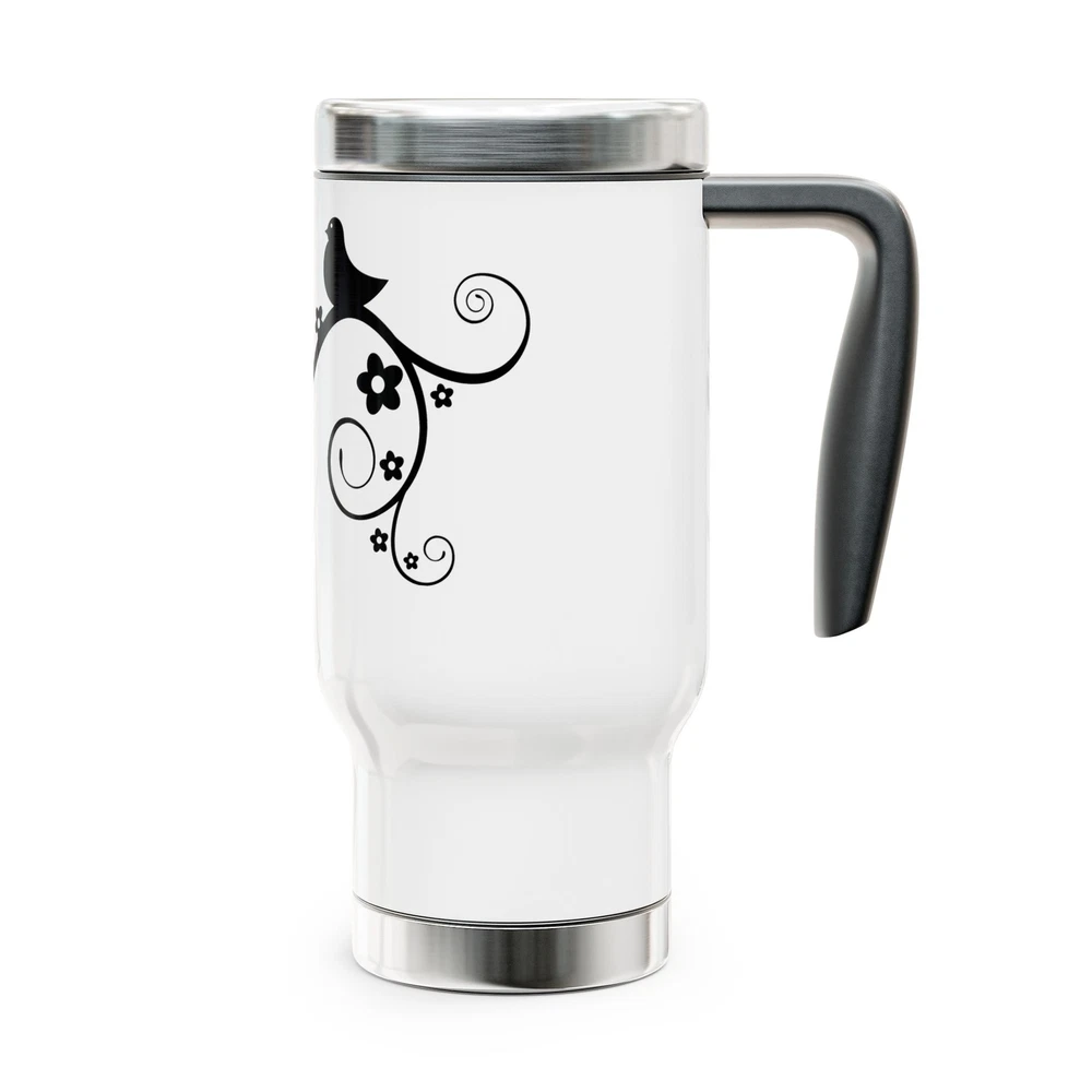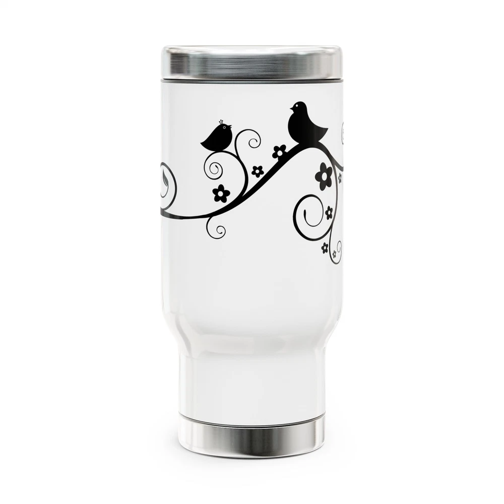 Take to the great outdoors with your favorite beverage in hand, all thanks to these custom stainless steel travel mugs. Each mug holds 14 oz. of your favorite beverage and is made with adventure-friendly stainless steel. With a glossy white enamel finish, a spill-proof and snap-on cap, as well as a lined-in insulating plastic, this mug combines character with an explorer's favorite; practicality. .: Material: 100% stainless steel with a glossy white enamel finish .: One size: 14 oz (0.41 l) .: Inner plastic insulation .: Spill-proof snap-on cap .: Stipple print texture .: Blank product sourced from China .: NB! Hand wash only