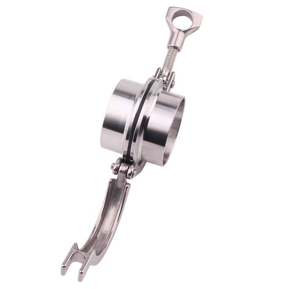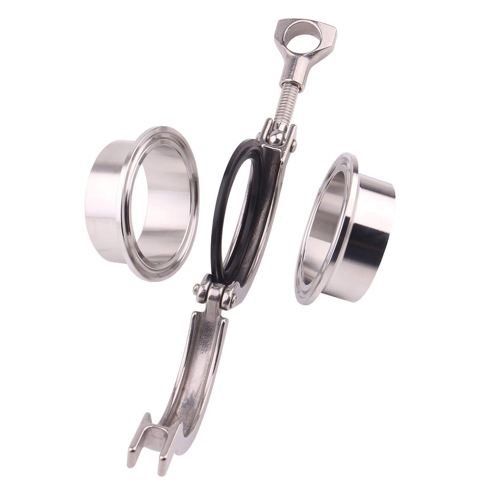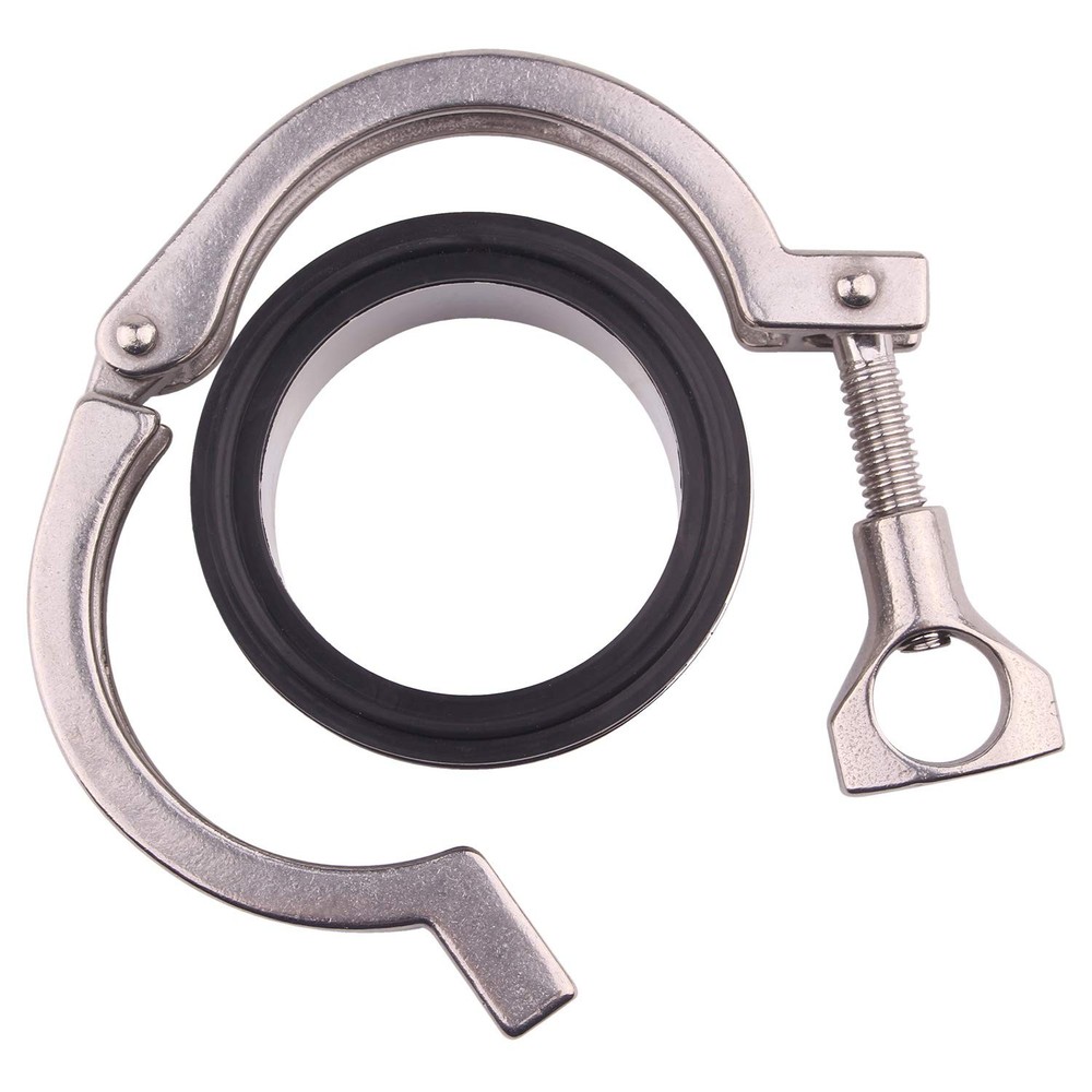 This tri-clamp is made of 304 Stainless Steel ( Single Pin Clamp with 2 inch) for resistance to corrosion and high temperatures. 2" diameter disc on two fittings are clamped together with a high temp FKM gasket in between, providing a clean efficient connection for valves, hoses, etc. NOTE: Pipe and tube fittings are components used for connecting, terminating, controlling flow, and changing the direction of piping in many different industries. Sanitary fittings are used in the food, beverage, biotech, pharmaceutical, and other sanitary process industries to transport fluids through pipe lines and are available in a range of materials, finishes, and shapes. When purchasing fittings, consider the application, as this will affect material type, shape, size, and required durability. Fittings are available threaded or unthreaded, in many shapes, styles, sizes, and schedules (pipe wall thickness). 1 x Adjustable Tri Clamp, 2 x Weld on Ferrules, 1 x FKM Gasket.304 Stainless Steel Material Clamp Size: 2" Tri Clamp, 64mm Flange OD; Ferrule Size: 51mm Pipe OD, 48mm Pipe ID Gasket Size: 64mm OD, 48mm ID Easy tighten thumb screw Fit for all other homebrew stuff sanitary fittings