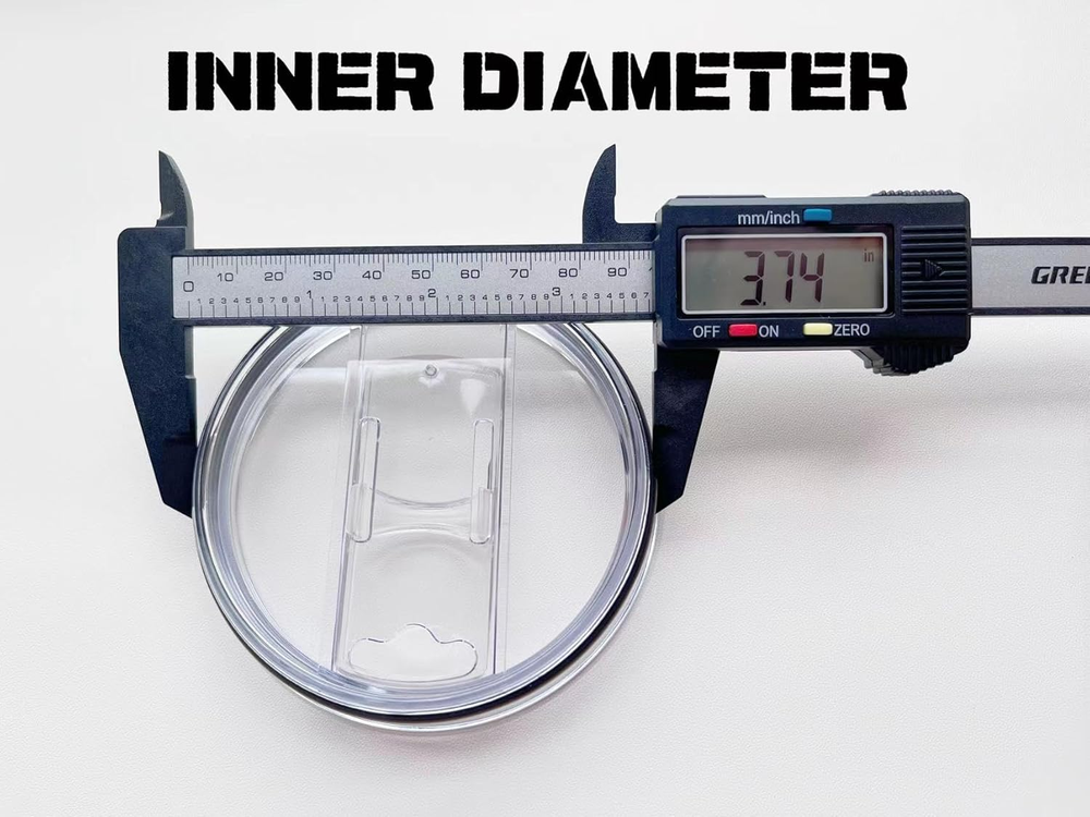Easy to open and close-switch sliding cover design, easy to use. The hole on the top of the cup can be used directly or with a straw. The sliding cover design prevents you from touching your nose while drinking water. Excellent compatibility-the lid can replace 30 ounces (the inner diameter of the cup is about 3.72 in) insulated stainless steel cups of any material, but it is not suitable for RTIC flat-bottomed cups! In order to avoid you to buy an inappropriate size lid, before buying Please measure the inner diameter and outer diameter of the cup, and then please refer to our fourth and fifth pictures. These two pictures are taken by our actual measurement. And check the details of our description. Splash-proof-The edge of the flat-bottomed cup lid is lined with a silicone gasket to prevent splashes and major spills when the cup is turned over. There is an air hole on the top of the slider, through the air ergonomics, which helps to reduce splashing. However, this cup lid cannot be guaranteed to be 100% leak-proof. Please check the two precautions described below before purchasing. High-quality materials-made of high-quality raw materials, can be used for a long time, BPA-free, easy to clean, and can be cleaned in a dishwasher. Quality Assurance-Buy our products, we will give quality assurance, if you have any questions or dissatisfaction with our products, you can , we will do our best to serve you. Product Description Size:30oz Color:Clear Features: The closure can open and close for direct sipping or for a straw. Come with a black silicone o-ring around the base, which helps cover the cup tightly. Designed with an air hole on top of slider according airflow ergonomics which helps reducing splashing. The outside diameter size of the cup lid is shown in the picture - 3.91 IN . The inner diameter size of the cup lid is shown in the picture - 3.74 IN . Our cup lid inner diameter is 3.74 inches, as long as the cup mouth inner diameter of the cup is 3.7 inches - 3.74 inches are suitable. Other sizes are not recommended for purchase, NOTE!NOTE!NOTE!! Please be sure to check whether the size of your cup is appropriate before you buy. Avoid buying an unsuitable cup lid. THE CORRECT WAY TO USE: THE CORRECT WAY TO USE: When we put the lid on the cup, it may seem as if it does not fit, as if the lid is a bit too big. In fact, this does not need to worry, we just need to press the lid down a little, the lid will fit tightly on the mouth of the cup, this is also a special part of our design, the edge of the lid is a circle of rubber ring, this can help the lid tightly hold the mouth of the cup, will not easily fall out. So as long as the mouth of the cup in 3.70-3.74 inches, are suitable. Note : 1,The liquid in the cup is very full, and the cup is tilted 90°, when placed sideways, a small amount of liquid in the cup will leak out from the air hole on the top of the slider. (Since our design is to help reduce splashing, we have designed an air hole on the top of the slider to achieve this purpose through air ergonomics.) So if you buy this lid, please do not put the cup filled with liquid Place it sideways. So as not to cause you some trouble. However, if the liquid in the cup is not full and the tilt angle is lower than 45°, the liquid will not leak out. 2,If the Inner diameter of your cup is 9.5cm/3.74 inch, Outer diameter is 10 cm/3.9 inches,it is just right to use our lid, and the lid will fit tightly on the mouth of the cup. If your size is different from ours, it is not recommended that you buy it. Hope you can buy a suitable cover for you.