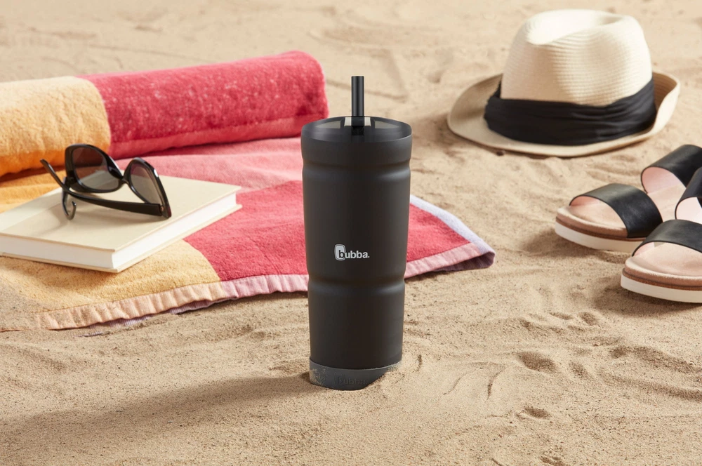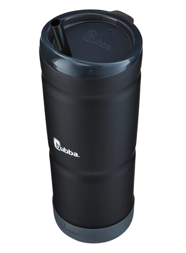 Whether you're hanging out poolside or at the tailgate, Stainless Steel Tumblers with an easy-to-use bumper make it perfect for any occasion. Simply place the removable bumper on the bottom for a skid-proof grip and a fun pop of color. Rubberized finishes add a matte effect to make the bottle look and feel soft to the touch. The 24-oz. portable size makes it a great fit for most cup holders so you can take it with you throughout the day. Vacuum-insulated stainless steel keeps your drinks cold for 18 hours and hot for 6 hours so you have more time to enjoy the moment. BPA-free, the lid, straw, and bumper are top-rack dishwasher-safe and the body is hand wash only for easy cleaning. Memories are made every day and bubba is always ready for whatever fun may come your way. REMOVABLE BUMPER: Adds a pop of color and a skid-proof bottom PORTABLE: Fits most cup holders, making it easier to take with you throughout the day FOR THE LONG HAUL: Vacuum-insulated stainless steel keeps drinks cold up to 18 hours or hot up to 6 hours, without sweating DRINK UP: Easy-to-clean lid can be used with or without plastic straw KEEP IT CLEAN: BPA-free; lid, straw, and bumper are top-rack dishwasher-safe, body is hand wash only