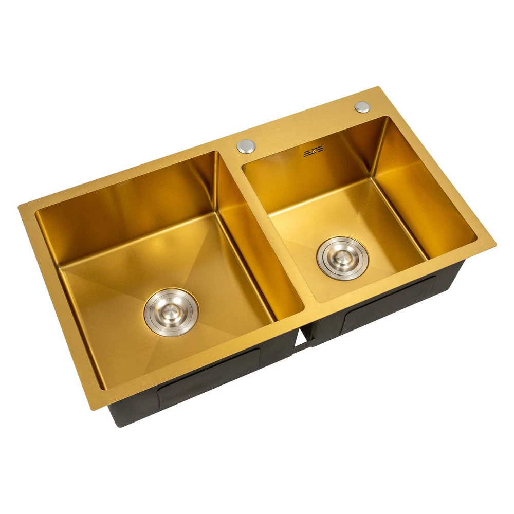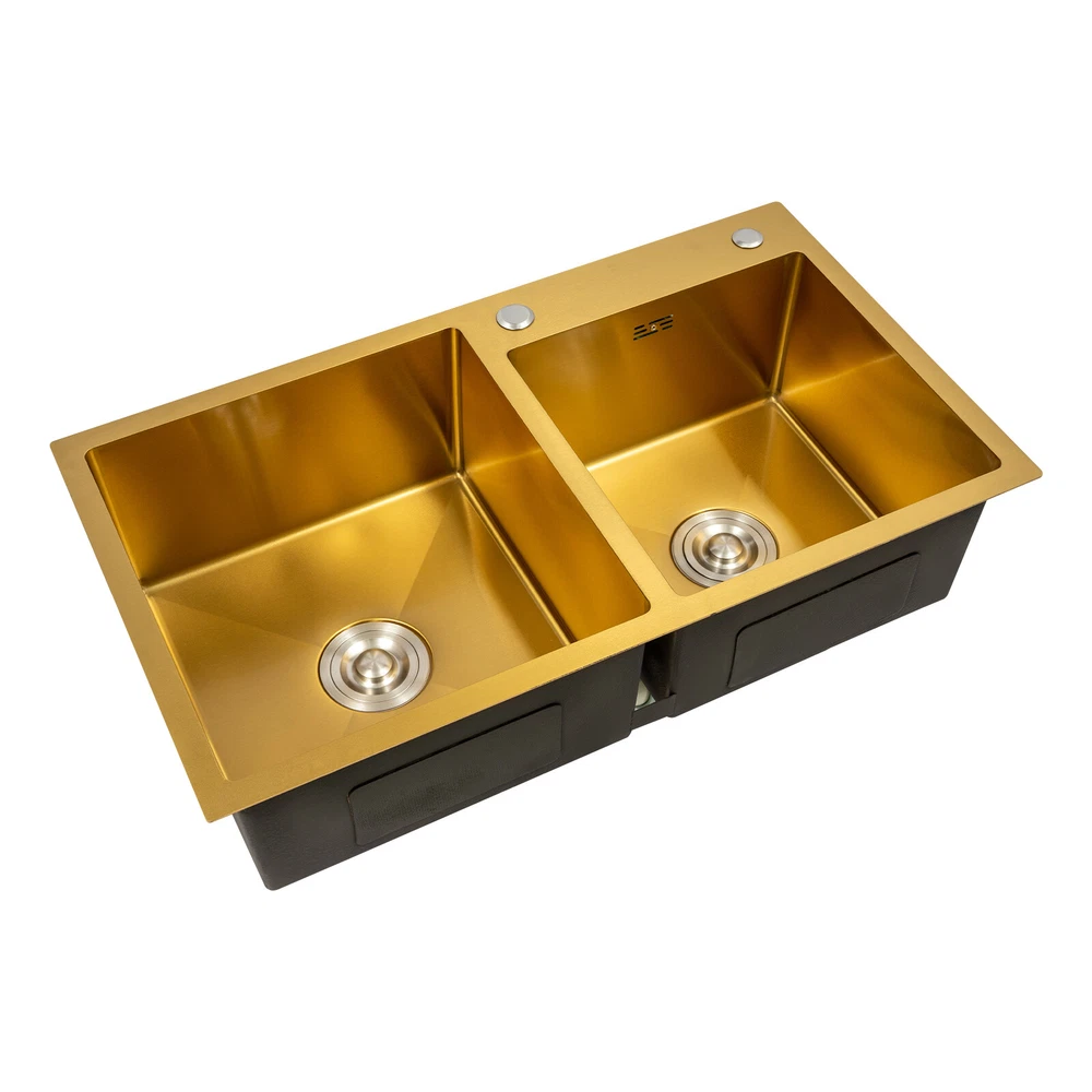 Stainless Steel Undermount Double Bowl Kitchen Sink 80x45cm Gold Finish