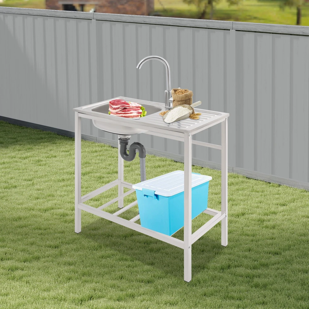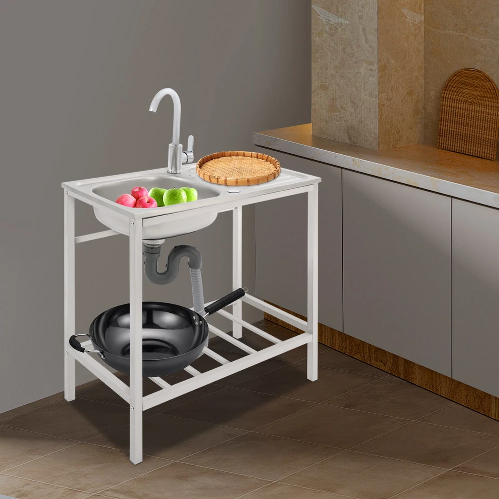 Utility Sink Laundry Kitchen Stainless Sink w/Operation Countertop &Bottom Shelf Application This product can be widely used in homes, outdoors, restaurants, laundry rooms, basements, bars, kitchens, dessert shops, coffee shops, hotels, garages, gardens, food trucks, etc., for cleaning tableware, vegetables, fruits, etc. Specifications Material: Stainless Steel, Plastic, ABS, Steel Wire Process: Electroplating, Polishing Style: Modern Shape: Rectangular Color: Silver Assembly Required: Yes Mounting Type: Freestanding Faucet Adjustable Angle: 360° Faucet Water Flow Mode: Water Column Basin Bottom Thickness: 0.4mm/ 0.016 in Total Load-bearing Capacity: 30kg/ 66.14 lbs Drain Hole Diameter: 11cm/4.33 in Basin Size: 35*31*13cm/13.7*12.2*5.12 in Product Size: 75*40*75cm/29.5*15.7*29.5 in Package Size: 80*45*18 cm/31.5*17.72*7.09 in Gross Weight: 6.02kg/13.27lbs Net Weight: 5.72kg/12.61lbs Package Included 1* Free Standing Sink 1* Faucet 1* Drainpipe 2* Inlet Pipes 1* English Faucet Installation Manual 1* English Drain Pipe Installation Manual 1 Pair* Gloves All Accessories for Assembly Notes Please check the size carefully before ordering. Please do not scratch its surface with sharp objects to obtain a longer service life. Please allow the slight color difference caused by the shooting light and 1-3cm error due to manual measurement, and make sure you do not mind before you order. Payment Delivery details Terms of sales About us Contact us Payment We accept ebay payment 。 Fees such as import duties, taxes are not included in the item price or shipping costs. These charges are the buyer's responsibility. Delivery details Shipping: 2-9 working days to: USA Terms of sales We maintain high standards of excellence and strive for hundred percent customer satisfaction. Feedback is very important to us. We hope that you contact us immediately before you give neutral or negative feedback, so that we can address your concerns. It is impossible to address issues if we do not know about them! About us Your satis faction is our ultimate goal. We work hard to earn your trust and future business. Our certified technicians have tested each item before shipping. The unit comes with 1 year limited warranty on all manufacturing defects. a) If you receive a defective item, you may return it or ask for a discount. Please contact us within 14 days after you receive the package. b) What you returned must be intact and in its original packaging as re? u. Customer is responsible for shipping costs of the returned item. c) We will cover the cost of shipping back t with the shipping rate indicated in the registration page. We will send you a new unit or refund the full payment you paid. Thank you. Contact us Business Hour Business Hour: Monday To Friday: 8:30 AM to 5:00 PM (Beijing China time) Due to time zones, our reply to your questions may not be immediately. But within above working time, we will reply your email within 24 hours. If it's non-workdays, please kindly be patient and wait till Monday. Please contact us with ebay message. Please feel free to contact us if you have any questions. Monday To Friday: 8:30 AM to 5:00 PM (Beijing China time) Due to time zones, our reply to your questions may not be immediately. But within above working time, we will reply your email within 24 hours. If it's non-workdays, please kindly be patient and wait till Monday. Please contact us with ebay message. Please feel free to contact us if you have any questions.