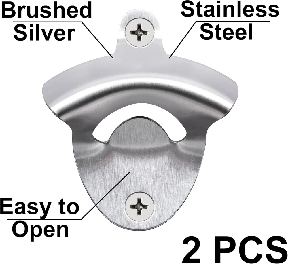Item Description: DURABLE AND EASY TO INSTALL – The beer cap opener is made of high-quality materials, durable and safe, and virtually indestructible. It takes just a minute to install using the matching screws included in the kit. Easy to ues:Easy to open your bottle cap with stainless steel bottle cap opener mountable Suggest to use the wall bottle opener with HAIICEN bottle cap catcher to collect the caps from bottle opener mounted Applications:The beer cap opener is suitable for a kitchen, bars, game room, club house, garage,man cave or boat. Product Packaging List:A white box include brushed silver bottle cap opener(3.1x2.4x1.1 inches) wall mounted and screws .