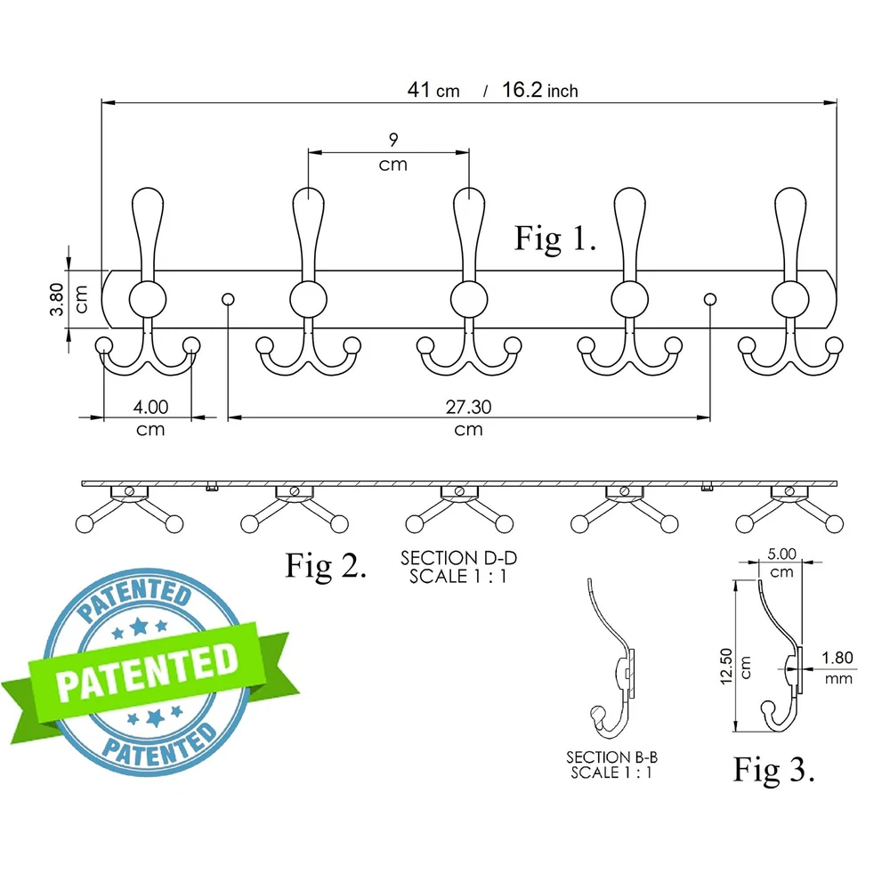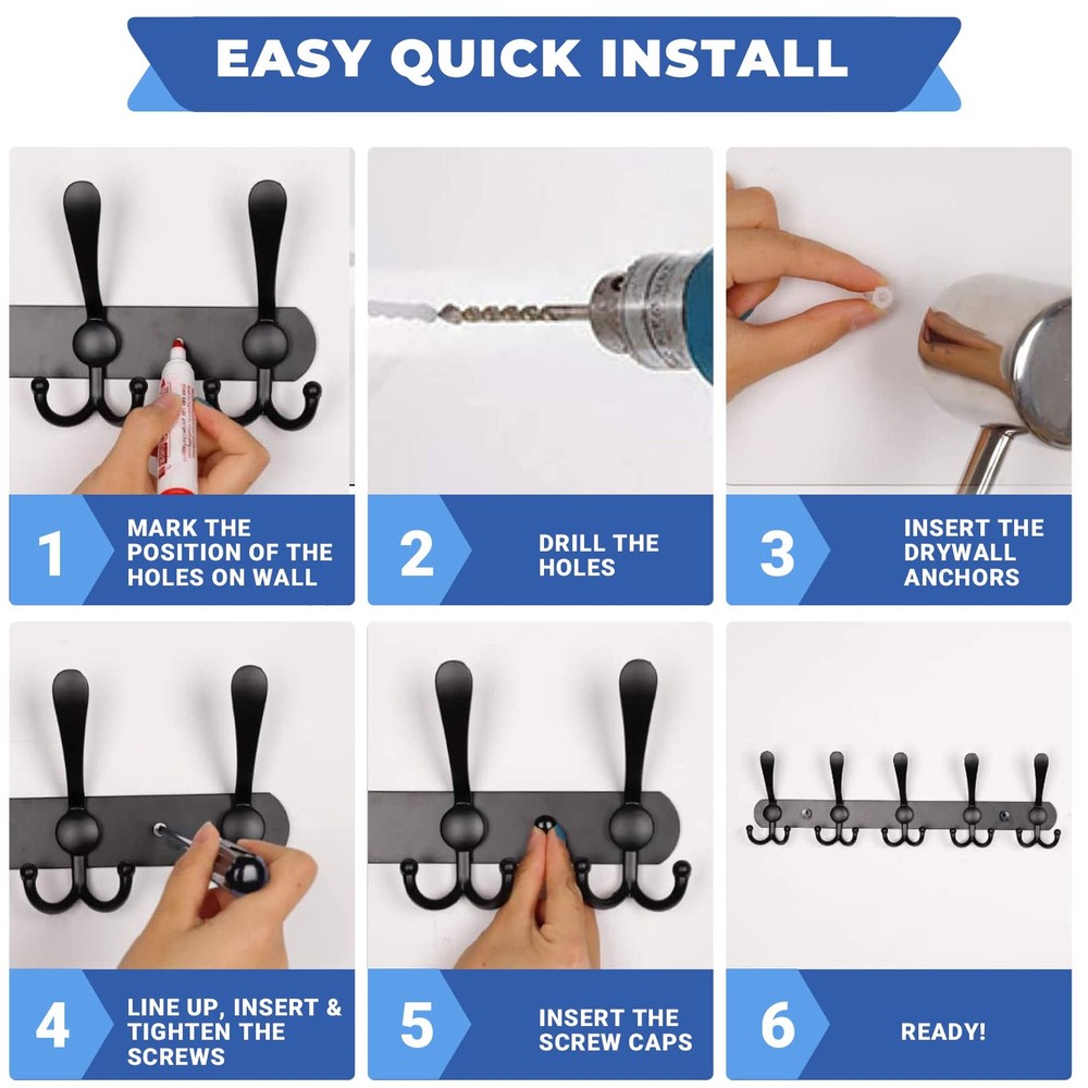 coat hooks are prepared from stainless steel to ensure a reliable, heavy-duty, and elegant product for our valuable customers. Our wall hooks are flexible and can be mounted on walls, doors, bathrooms, kitchen, laundry, and more without disturbing your home décor. However glossy appearance ascribed to the stainless steel finishing it will enhance the charm of your home furnishings. Quality assurance: For quality of the product cannot be compromised. Therefore our product is genuinely prepared from high-grade, highly durable 304 stainless steel. Moreover, we ensure the coat hooks are corrosion and rust-free. You can conveniently hang your stuff on it without worrying about rust stains. Three hook design: coat hooks each hook is especially three hooks designed to accumulate more stuff on it. Therefore you can hang more clothes or coats to minimize space constraints. Each rack of our product features 5 round edge coat hooks. Each hook has a further three hooks to ensure maximum hanging capacity. Sleek Contour: Coat hook features a sleek design with a shiny stainless steel finish making it feasible for multipurpose use. Three round edge hooks on each hook apart from accommodating several clothes displays an elegant appearance as well. Easy To Install: provides all the necessary hardware to install this coat hook. Installing these coat hooks is a breeze. This wall coat rack features pre-drilled holes for convenient installation. 2 stainless steel wall hook are provided with screws and screw cover for a neat tidy look. Specification: Rust-free Stainless steel 5 hooks on each rack. Each hook features 3 hooks design Pack of 2 coat hooks WELL-CONSTRUCTED: These coat hooks are made of premium both shinny and rigorous. Using these wall mounted coat rack in your room will add a glamorous look to it through gleam and these hooks are long lasting VERSATILE: This hook can be used in any room for hanging Towel, Hats, Jacket, Purse. Can be used in the Bathroom & Entryway for any purpose, with any décor. EASY INSTALLATION: Simply mount the hooks to the wall with the included hardware for a quick and hassle-free setup. ORGANIZED: Our wall hooks provide ample space to keep your items neatly arranged and within reach.nted Design: Coat Rack is a patented design product that shows brands seriousness towards providing quality products to its customers. Coat hooks are designed ergonomically. It does not rust, these coat racks are best in their class. Our Guarantee: Purchase includes 2 Coat Racks, Instruction Card, Screws and Covers, In case of any complication while using our coat hooks, our customer support will guide you through and solve it for you.Get these coat hooks for wall mounted on the go.