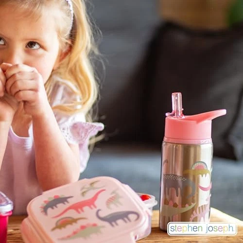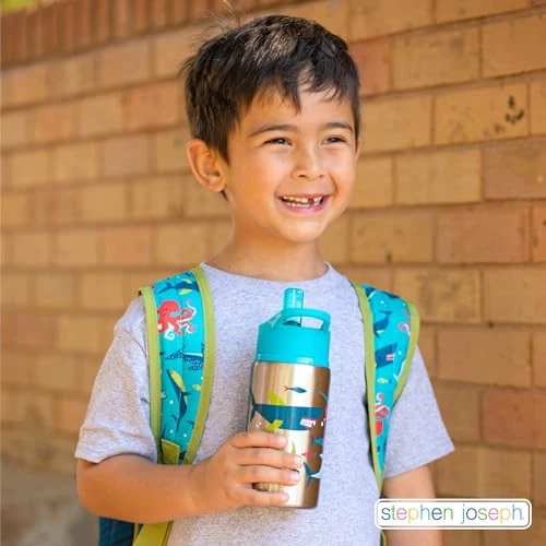 Our Stainless Steel Water Bottles hold up to 18 ounces of liquid, feature a flip top spout to prevent leaks when closed and include an easy-to-hold carrying loop. Top rack dishwasher safe, our stainless steel bottle is easy to keep clean! Each bottle comes with a second straw for maximum re-use. Add our Snack Box with Ice Pack, Lunch Pal or Classic Lunchbox for a perfect lunch set. MADE FOR LITTLE HANDS: Our Stainless Steel Water Bottles hold up to 18 ounces of liquid, feature a flip top spout to prevent leaks when closed and include a comfortable carry handle that is easy for little hands to hold. EASE OF REUSE: Each bottle comes with a second straw for maximum re-use. MATERIALS YOU CAN TRUST: BPA, phthalate and PVC free stainless steel water bottles DISHWASHER SAFE: Stainless Steel Water Bottles are easy to keep clean, our water bottles are dishwasher safe for easy cleaning. Our fun patterns for withstand the top rack in the dishwasher. CAPACITY and SIZE: 18 ounces, 7” height x 2.875 diameter