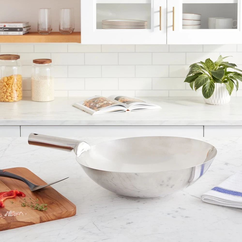 Stainless Steel Wok with Welded Joint Handle, 16-Inch